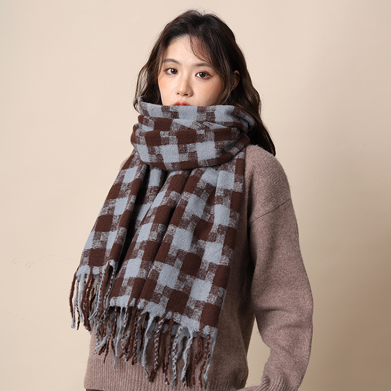 Sciarpa a quadri da donna autunno inverno sensazione avanzata spessa e calda collo frangia versatile studente moda INS