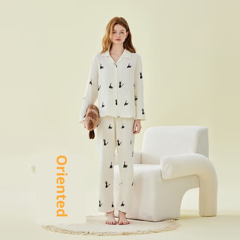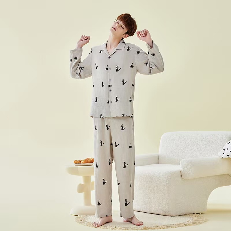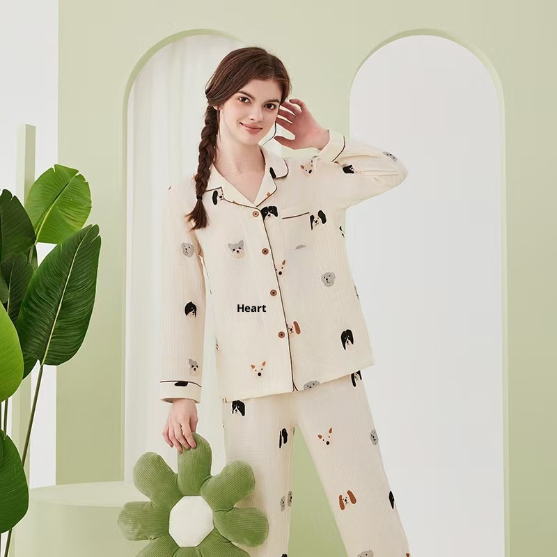 Product Category:Set,Fabric Name:Double-layer gauze,Design:Cardigan,Main fabric composition:Cotton,Thickness:Lightweight,Fabric Thickness and Weight:Thin 121-140g/square meter,Collar Style:Turn-down Collar,Sleeve Length:Long Sleeve,The length of the pants:Long Pants,Functionality:Casual, breathable, sleep, bathing, home, comfortable, suitable for outdoor wear,Time to market:Autumn 2025,Suitable for the season:Summer, Winter, Spring, Autumn, All-season,Applicable to all categories of people:young women,Applicable Scenarios:Outdoor, Home, Hotel Bathhouse, Wedding Photo Studio,Color:Gray Male M824, Gray Female W825, Off-White Female W826, Gray Male M827, Off-White Female W828, Cute Dog Print W623,Size:L, XL, 2XL, 3XL, M,Origin:Nantong,Is it exclusively for cross-border export supply?:No,Main fabric ingredient content:100%,Style:Minimalist Casual
