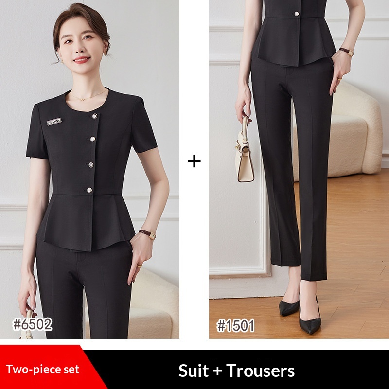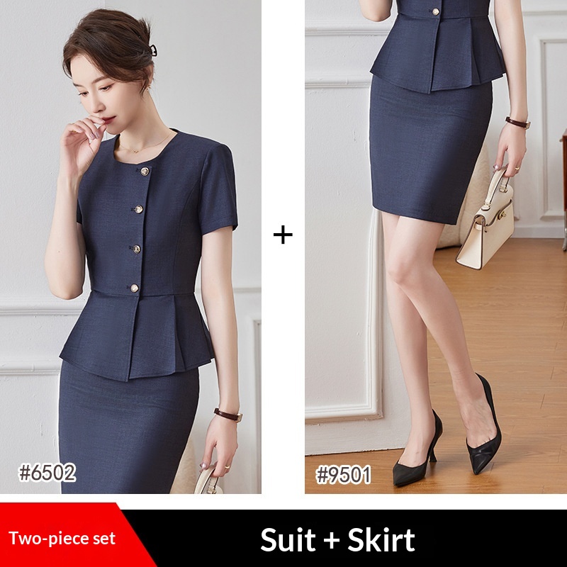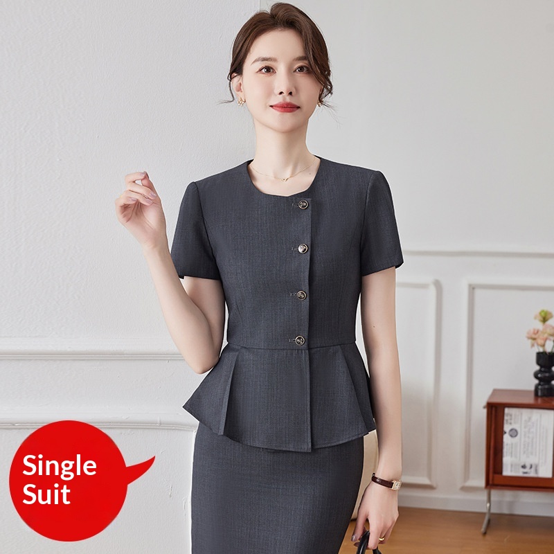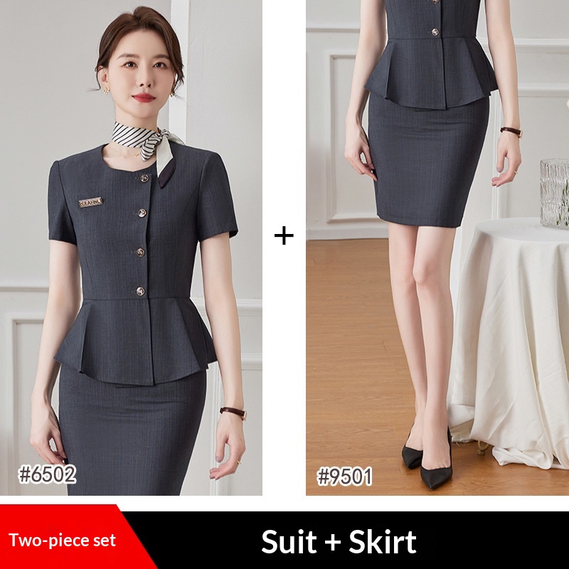 ChicShe 2024 Nuovo stile estivo grigio scuro manica corta blazer senza colletto da donna pantaloni gonna elegante set due pezzi