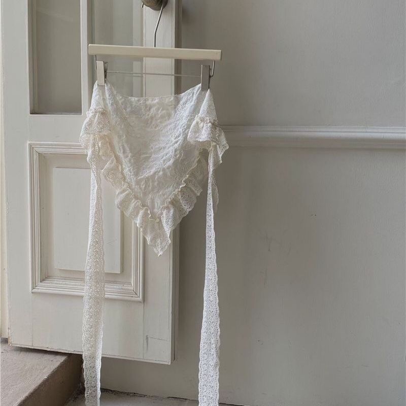 ChicShe 2025 Corea Dongdaemun Retro Pizzo Trim Foulard Triangolo a Strati Sciarpa Mezza Gonna Tenda