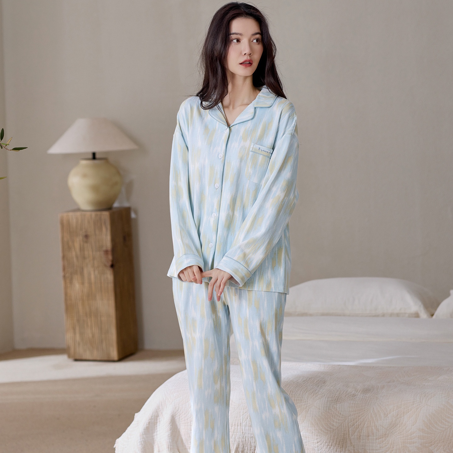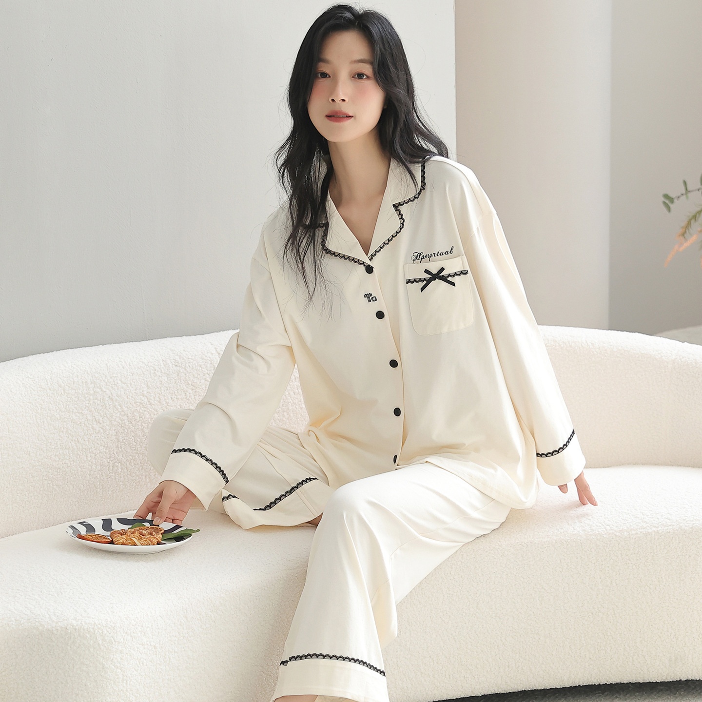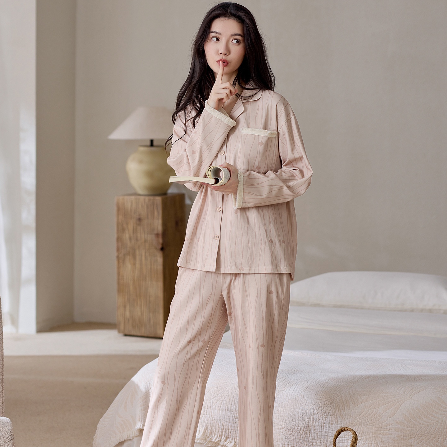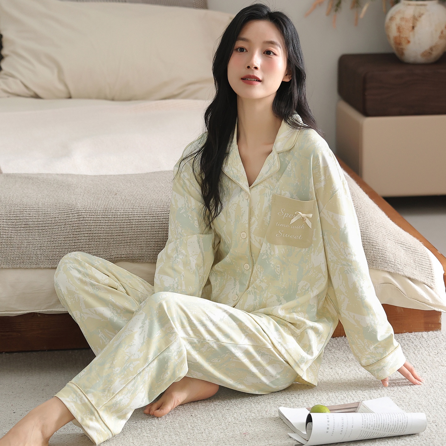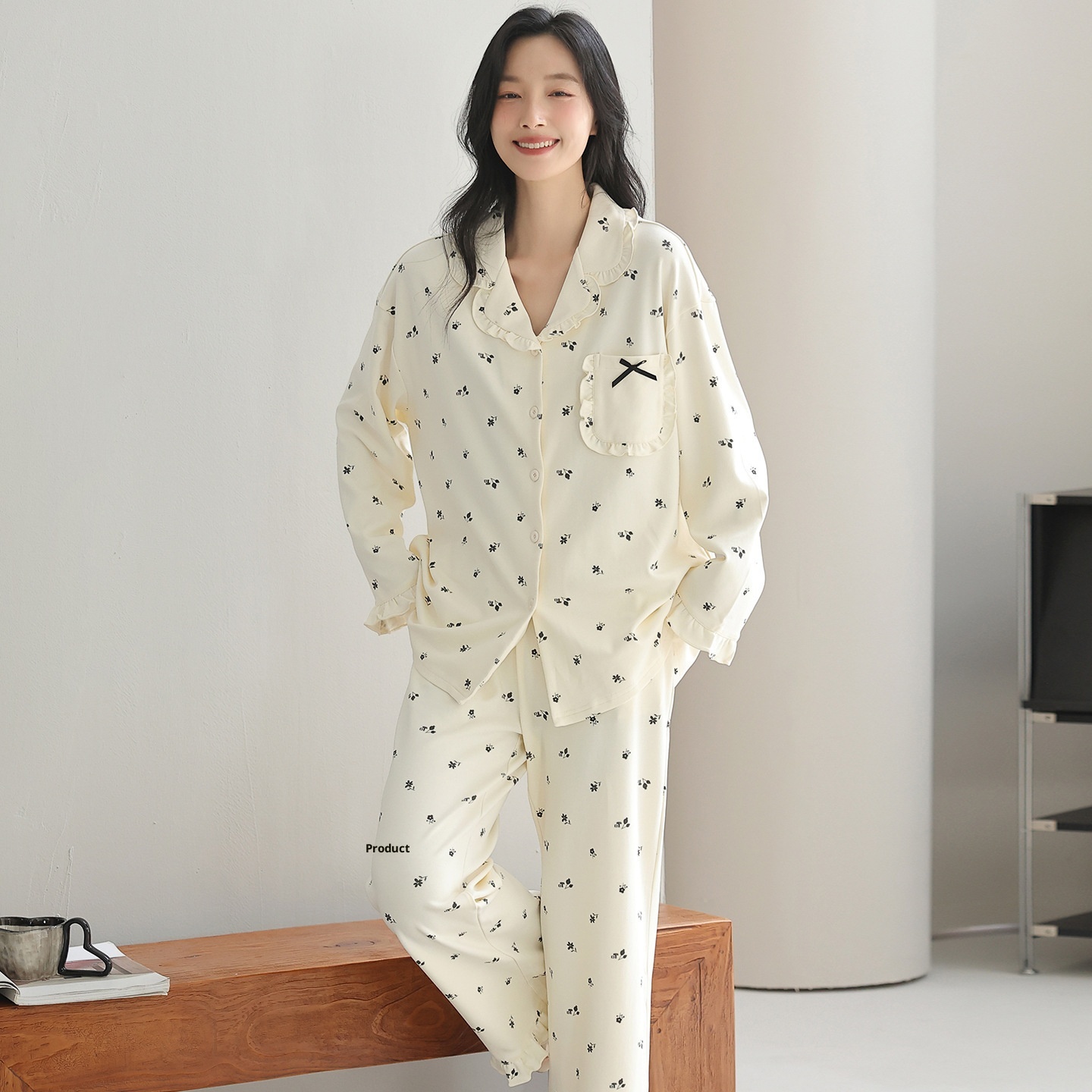 ChicShe 2025 Nuovo Pigiama da Donna Puro Cardigan con Colletto Risvoltato Manica Lunga Donna Casual Primavera Autunno Completo da Casa in Cotone