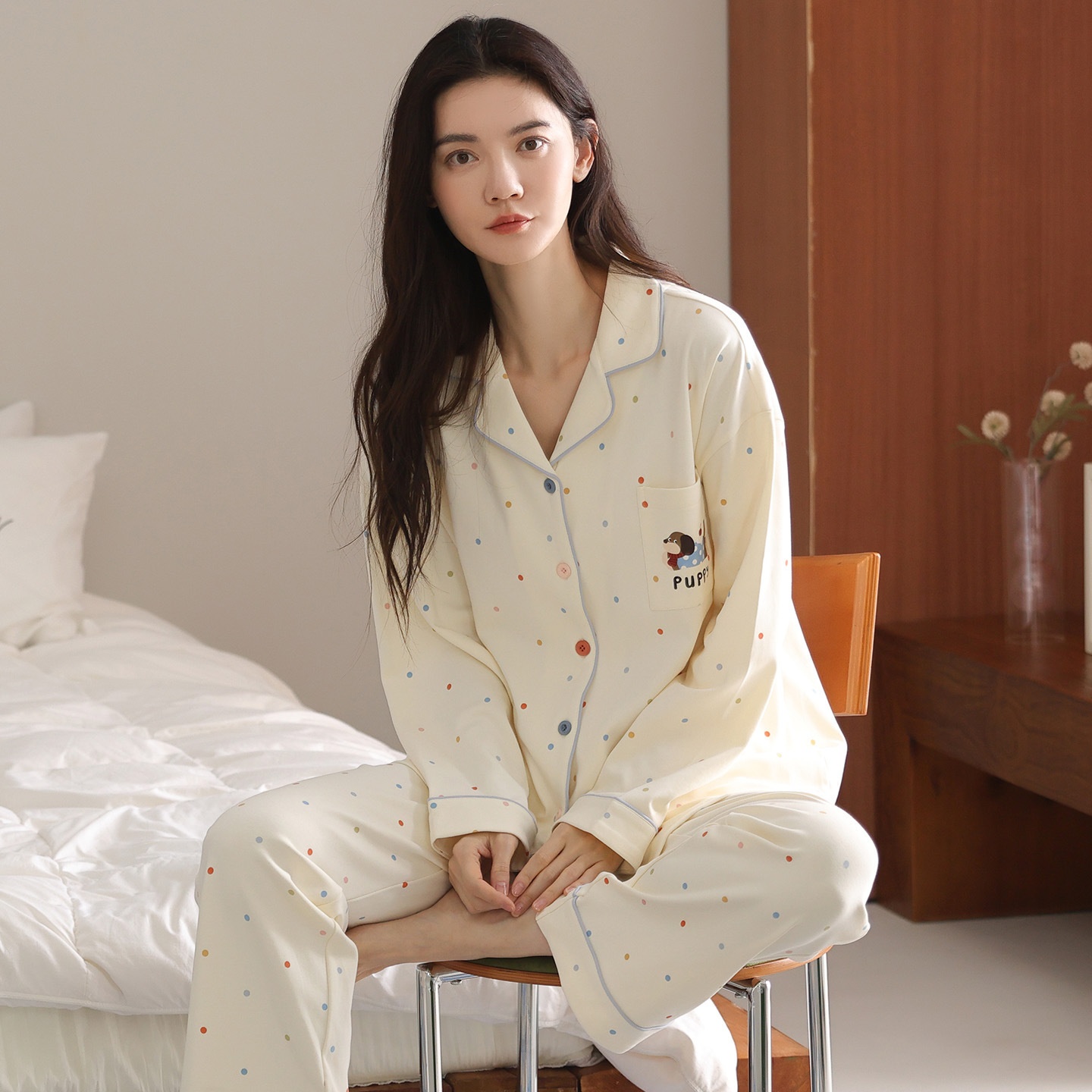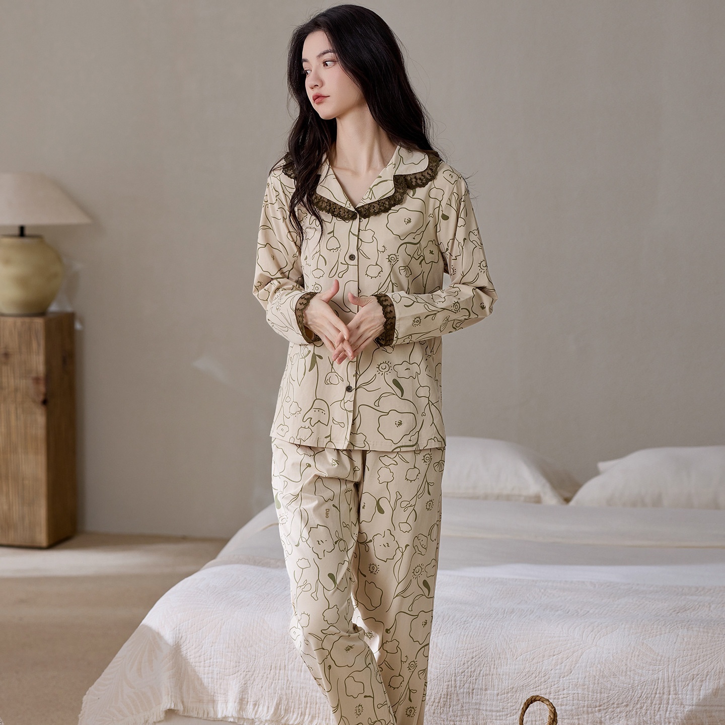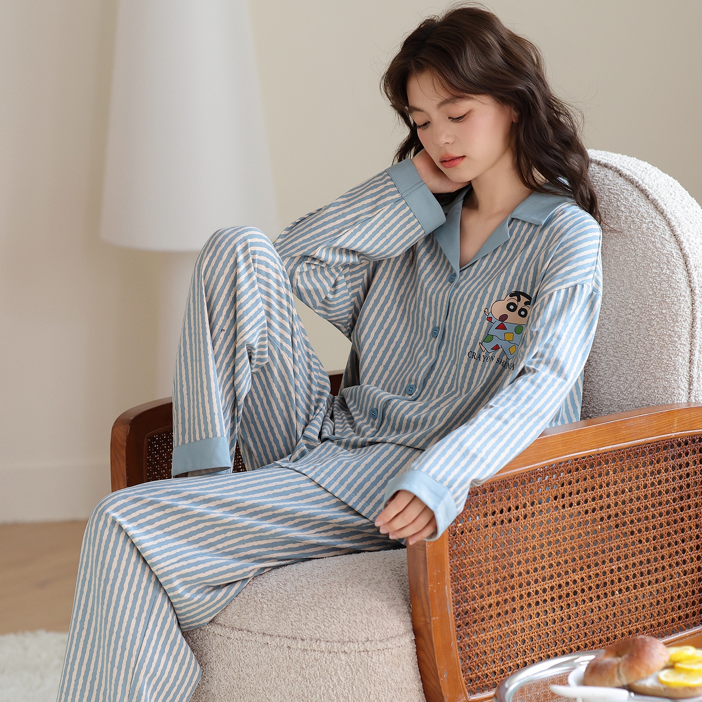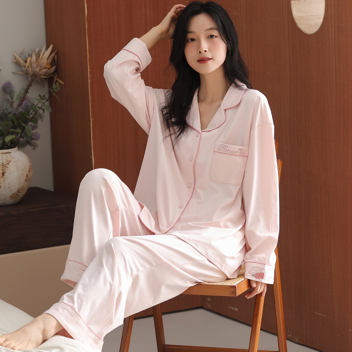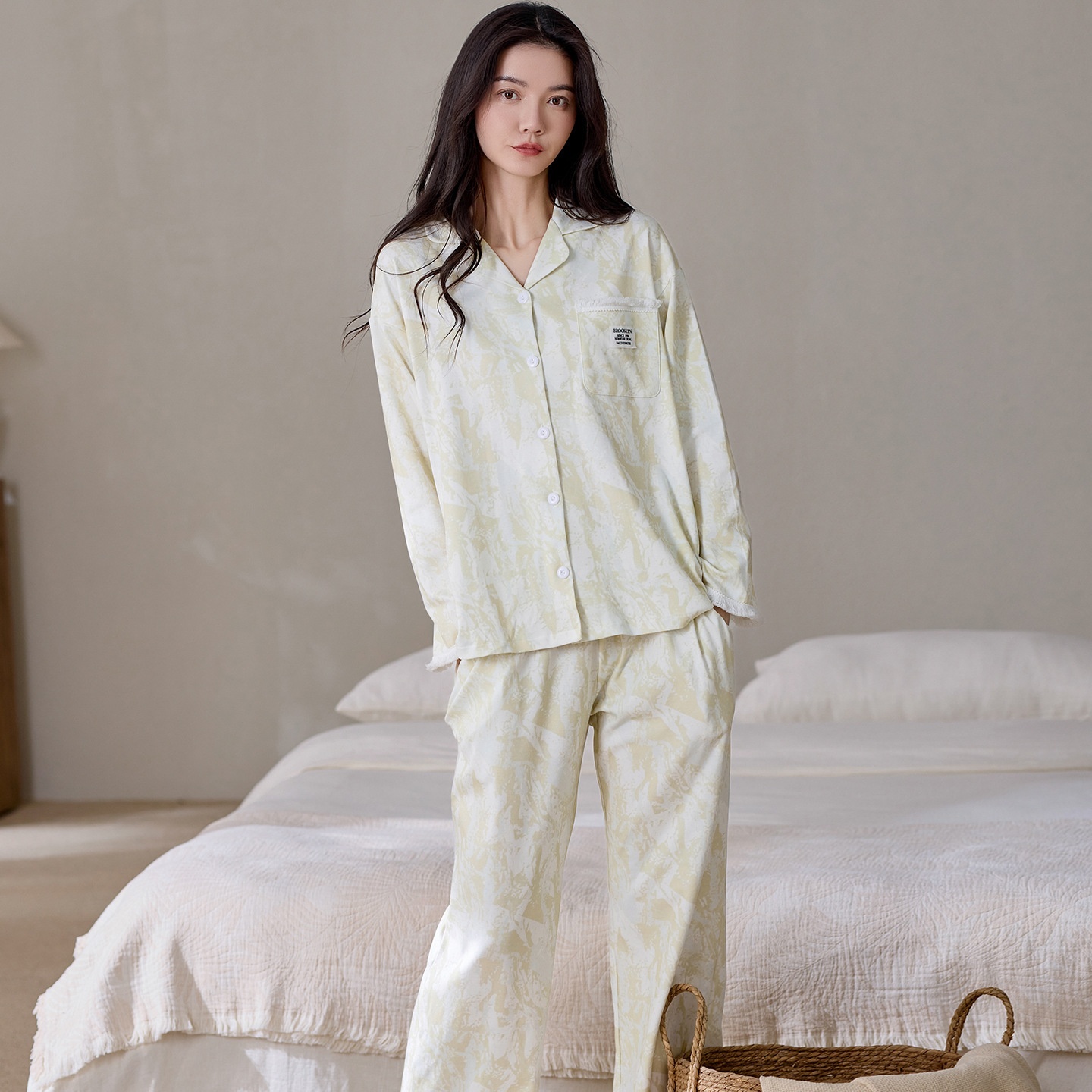 ChicShe 2025 Nuovo Pigiama da Donna Puro Cardigan con Colletto Risvoltato Manica Lunga Donna Casual Primavera Autunno Completo da Casa in Cotone