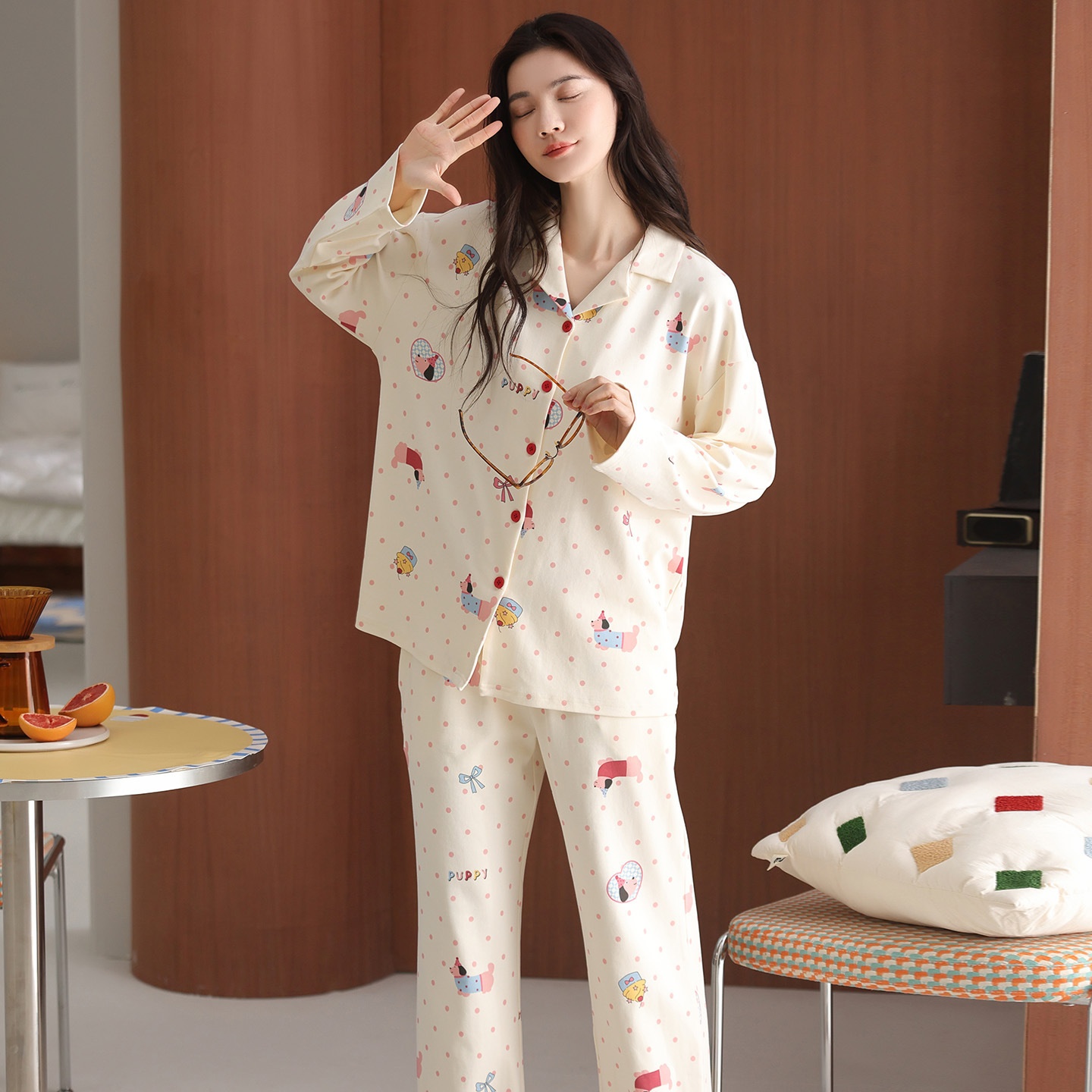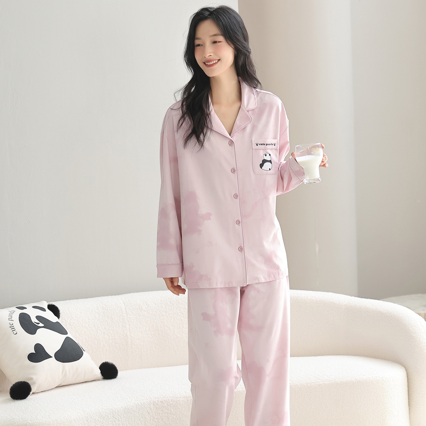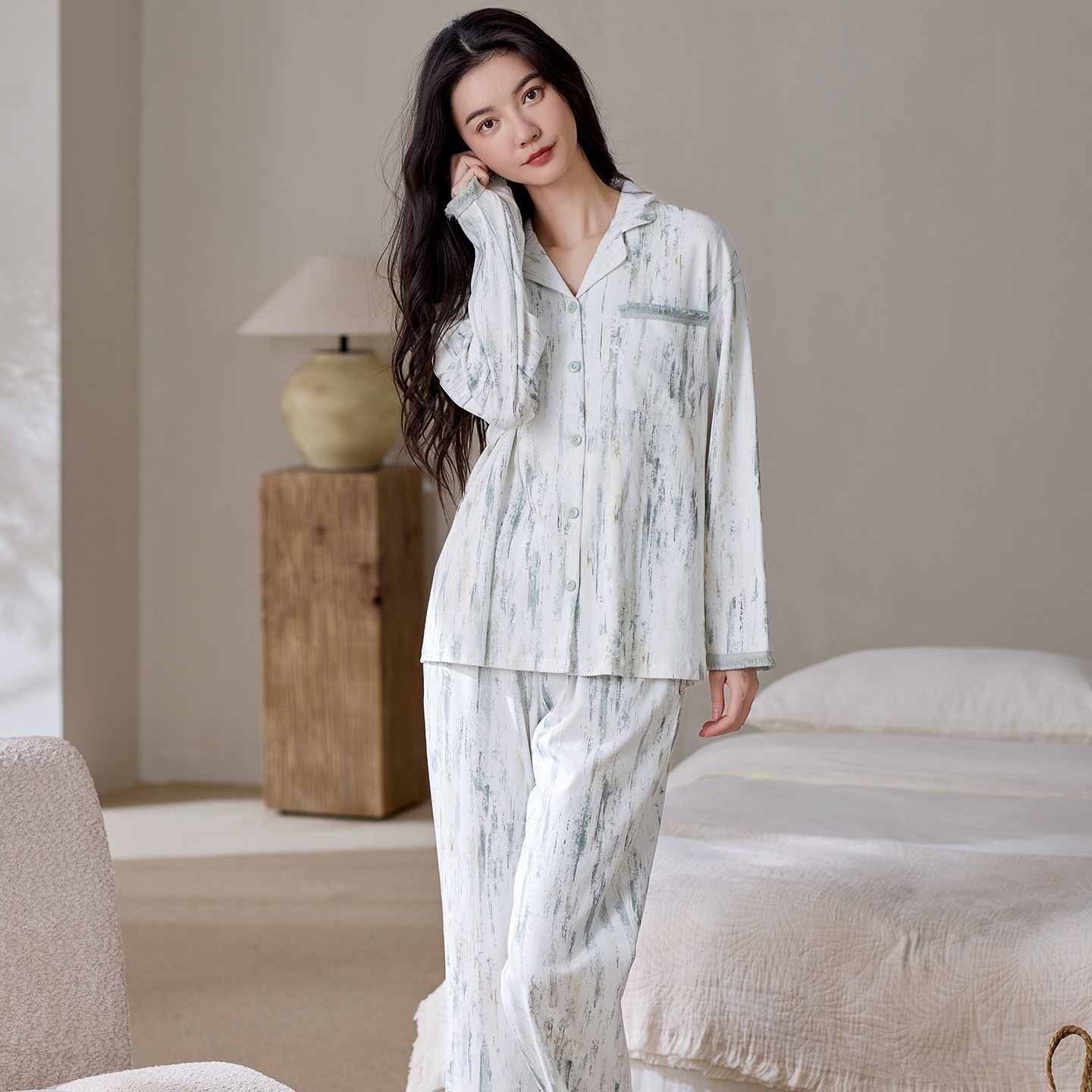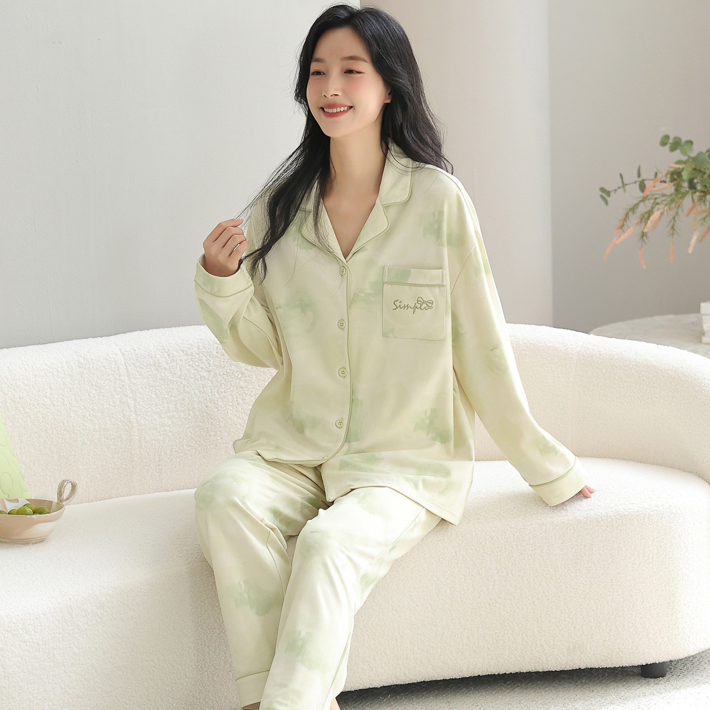 ChicShe 2025 Nuovo Pigiama da Donna Puro Cardigan con Colletto Risvoltato Manica Lunga Donna Casual Primavera Autunno Completo da Casa in Cotone