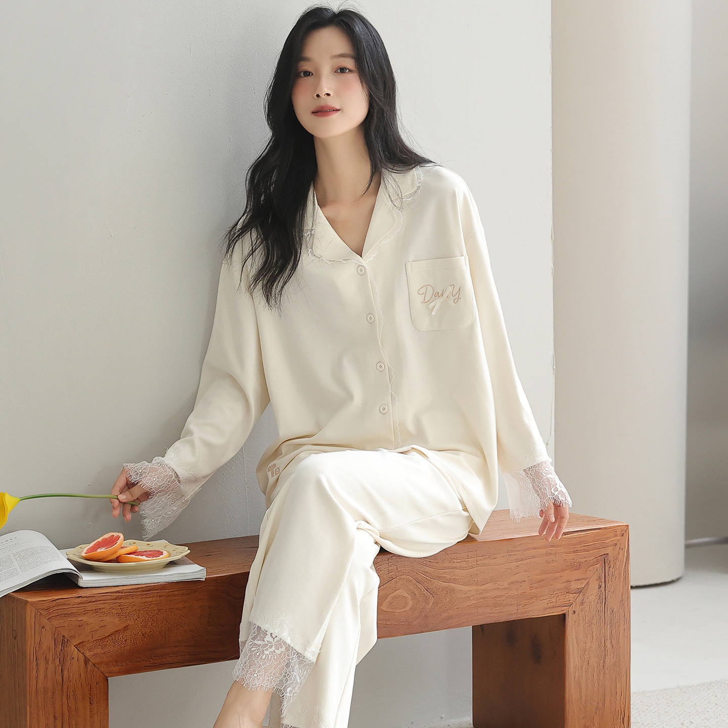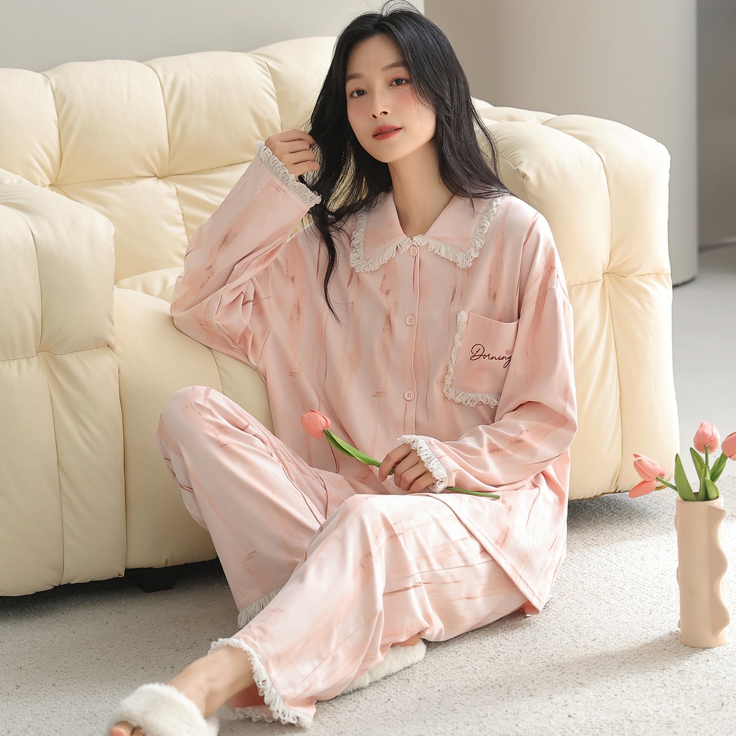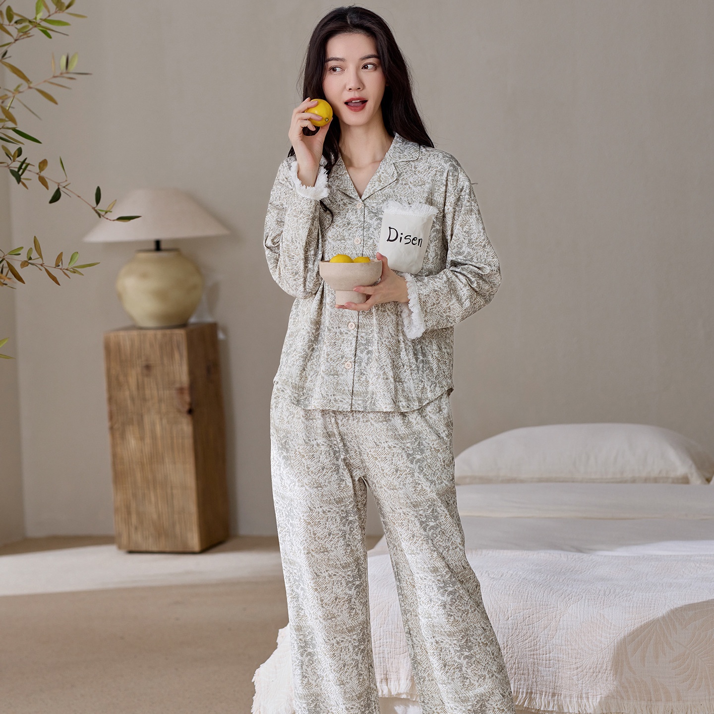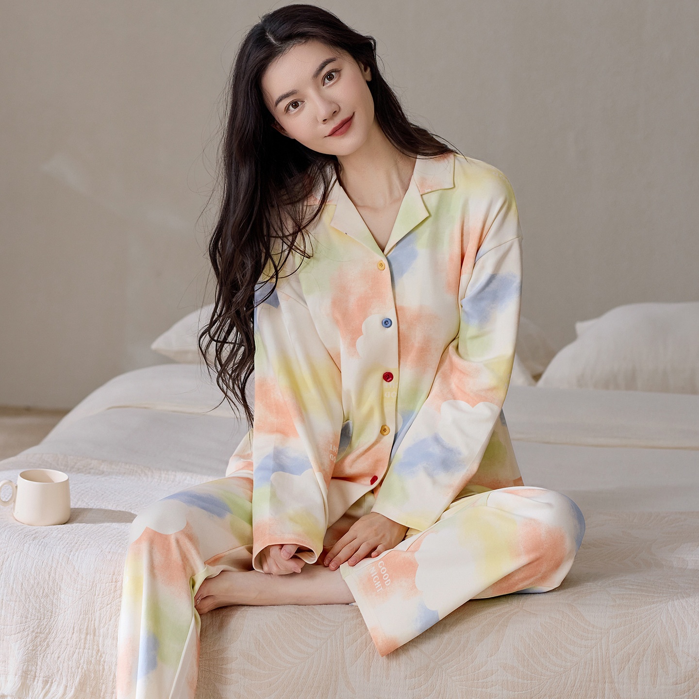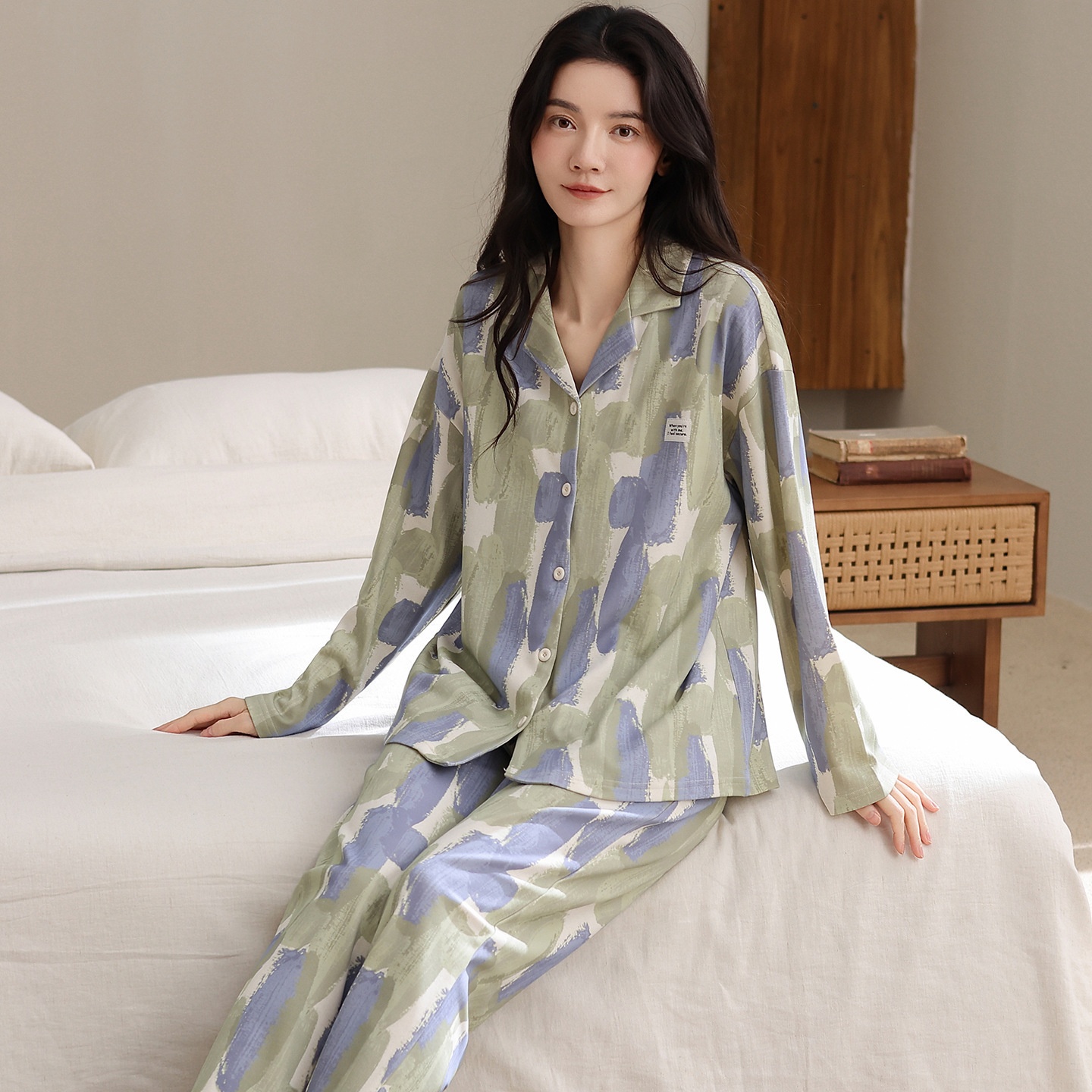 ChicShe 2025 Nuovo Pigiama da Donna Puro Cardigan con Colletto Risvoltato Manica Lunga Donna Casual Primavera Autunno Completo da Casa in Cotone
