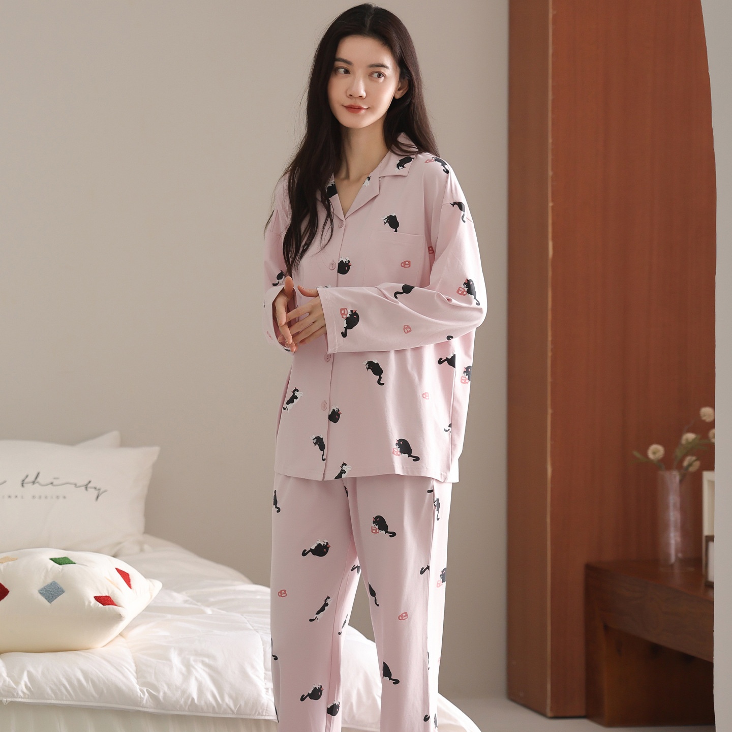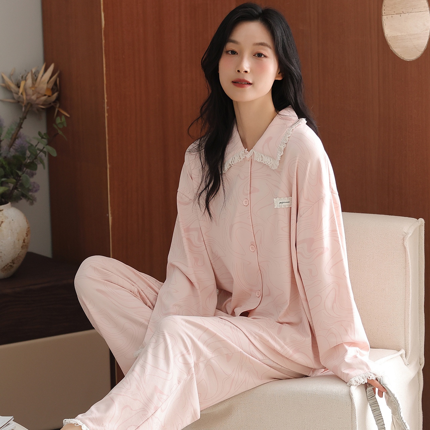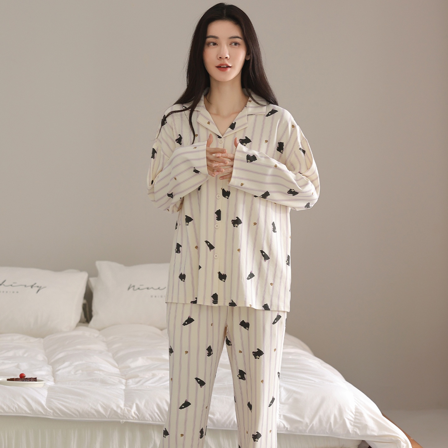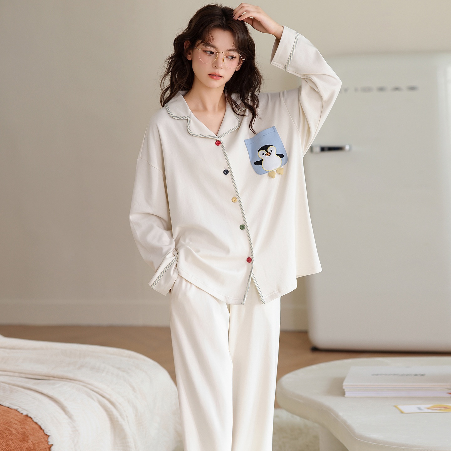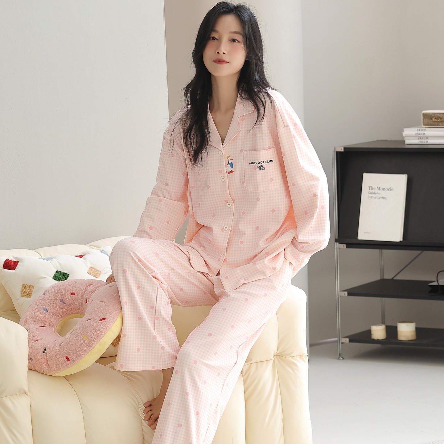ChicShe 2025 Nuovo Pigiama da Donna Puro Cardigan con Colletto Risvoltato Manica Lunga Donna Casual Primavera Autunno Completo da Casa in Cotone
