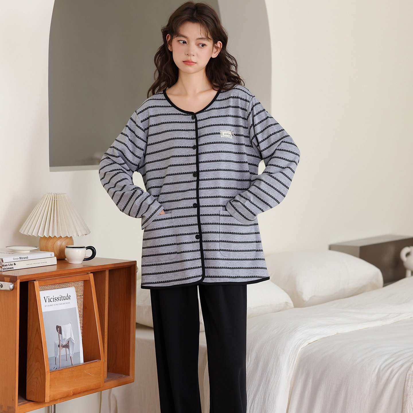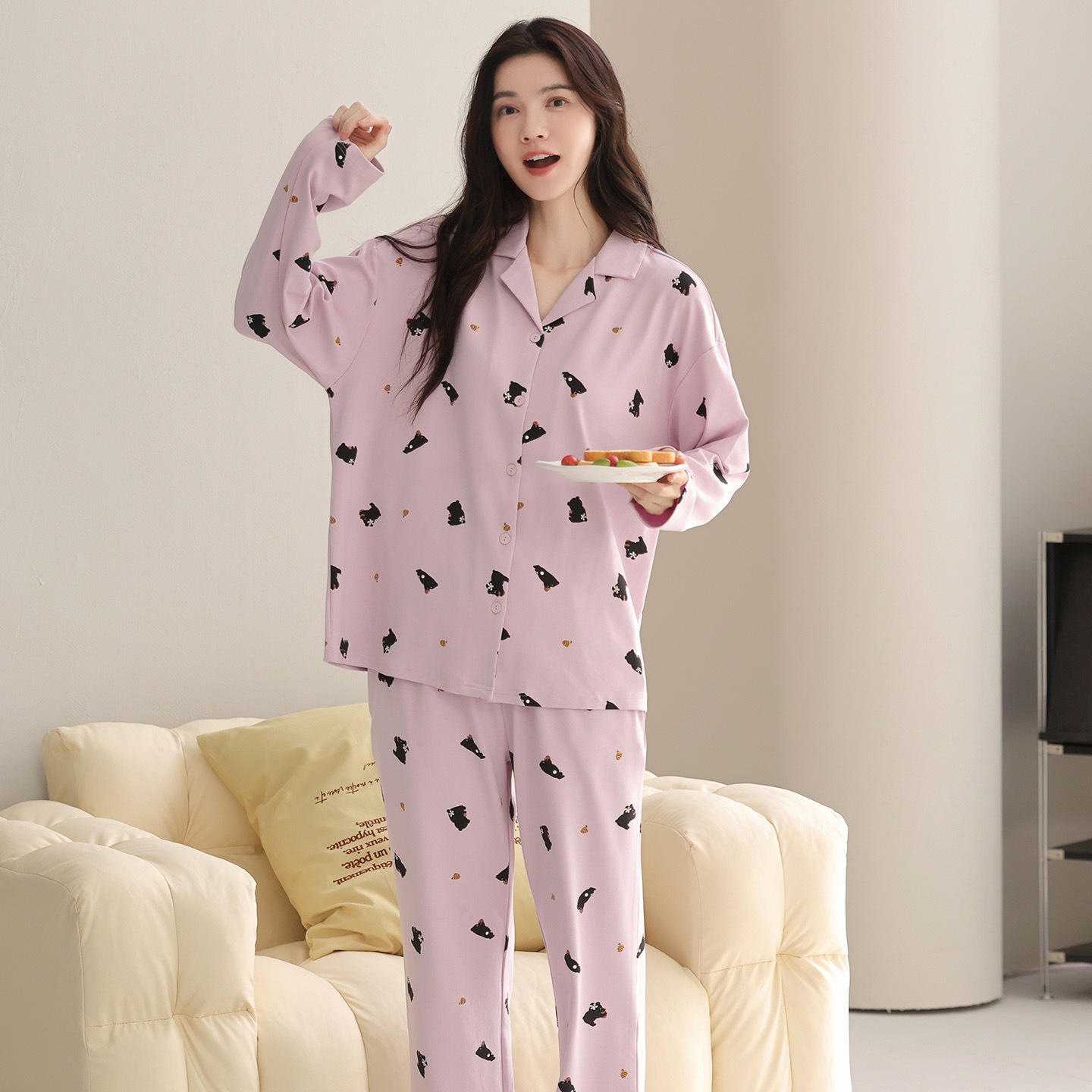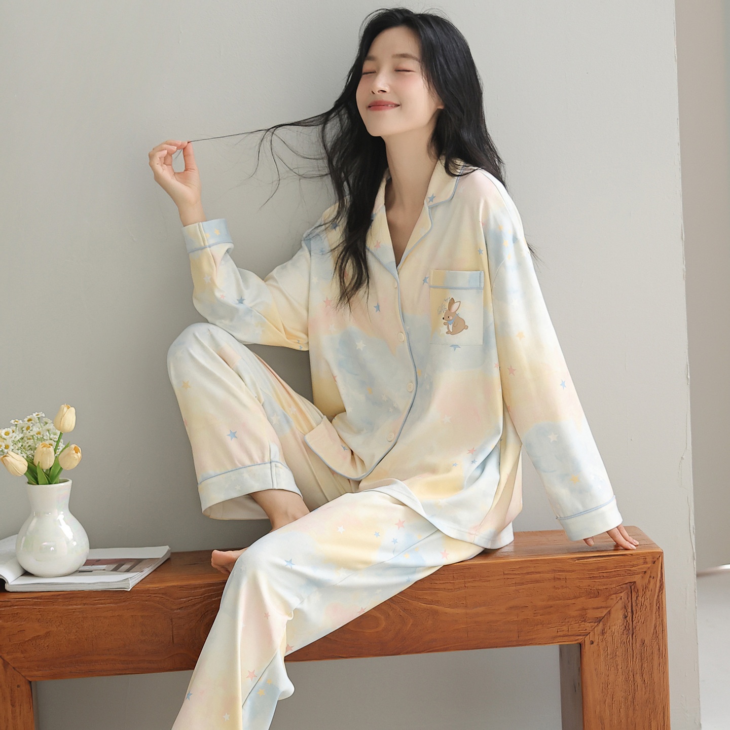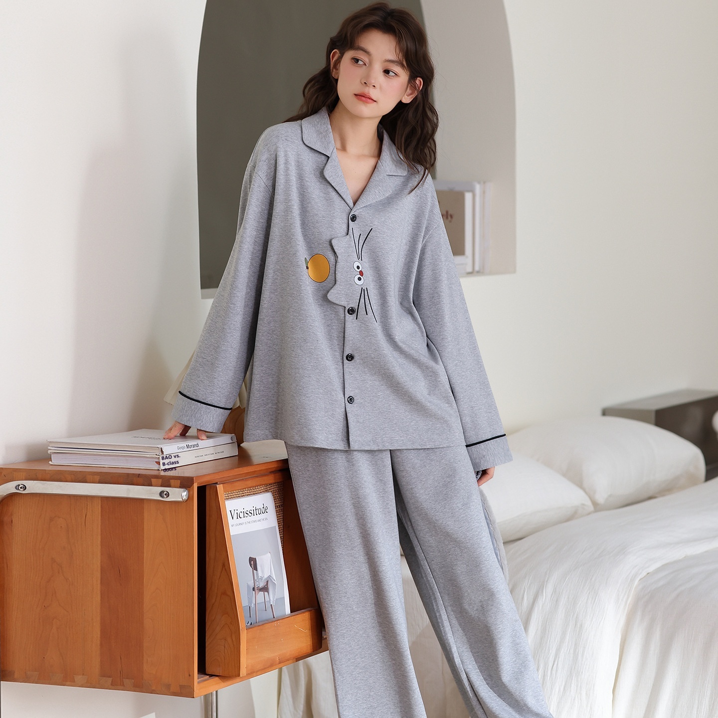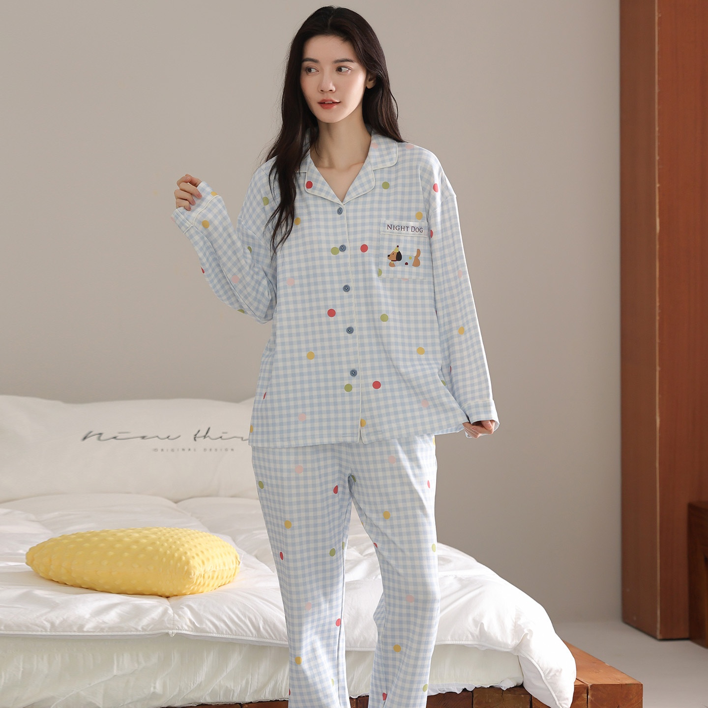 ChicShe 2025 Nuovo Pigiama da Donna Puro Cardigan con Colletto Risvoltato Manica Lunga Donna Casual Primavera Autunno Completo da Casa in Cotone