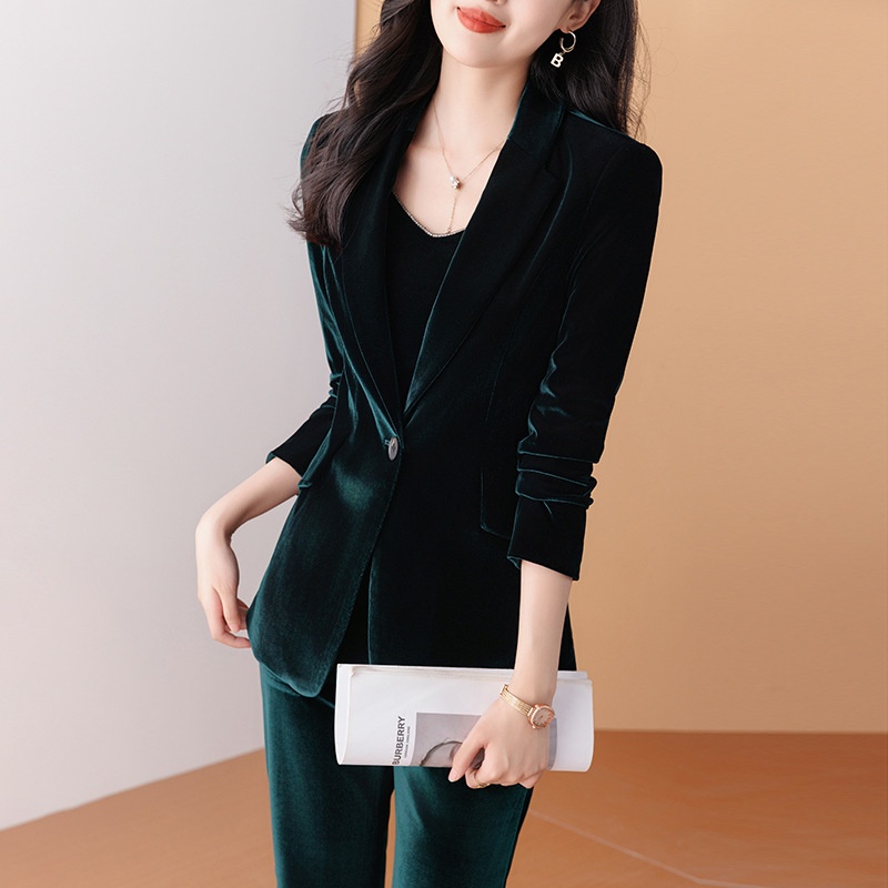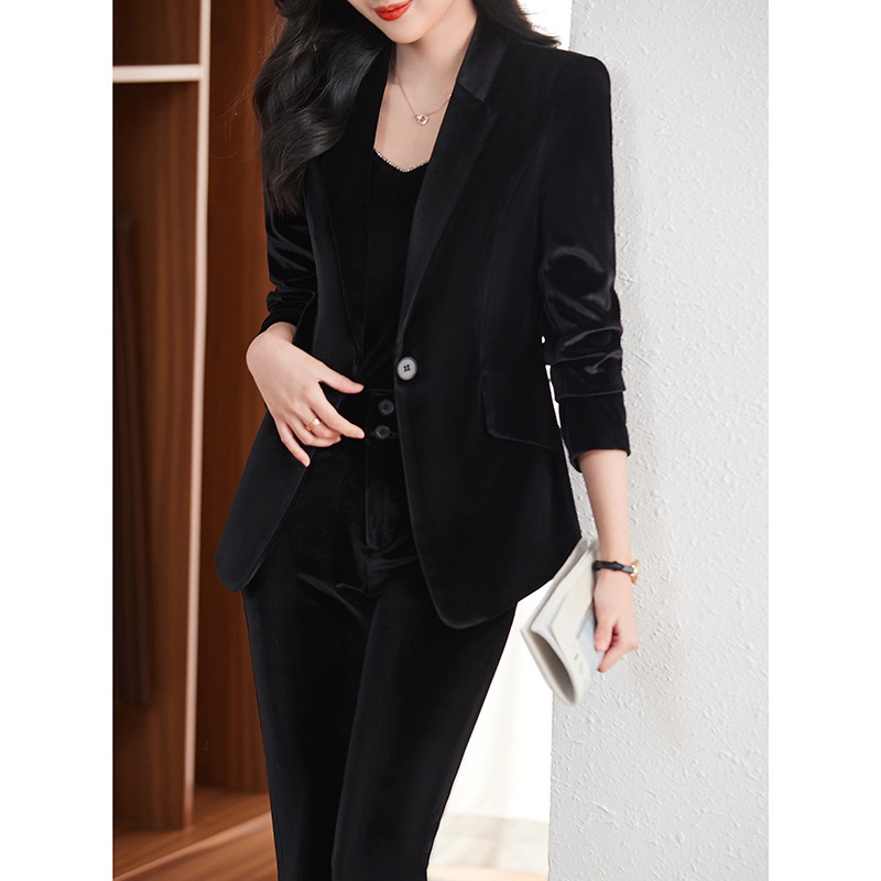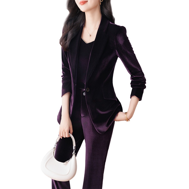 Blazer in velluto femminile di alta gamma ChicShe, nuovo elegante tailleur primaverile e autunnale con pantaloni svasati