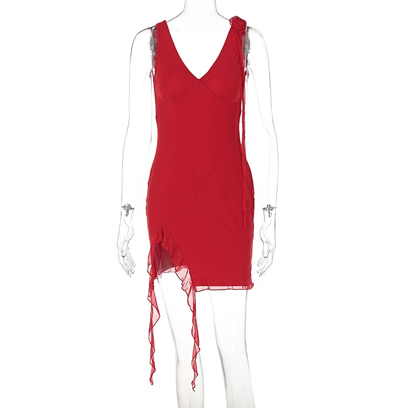 ChicShe, abito estivo da donna con volant, sexy, sottile, decorato con fiori e spalline a V, stile europeo e americano, 2024