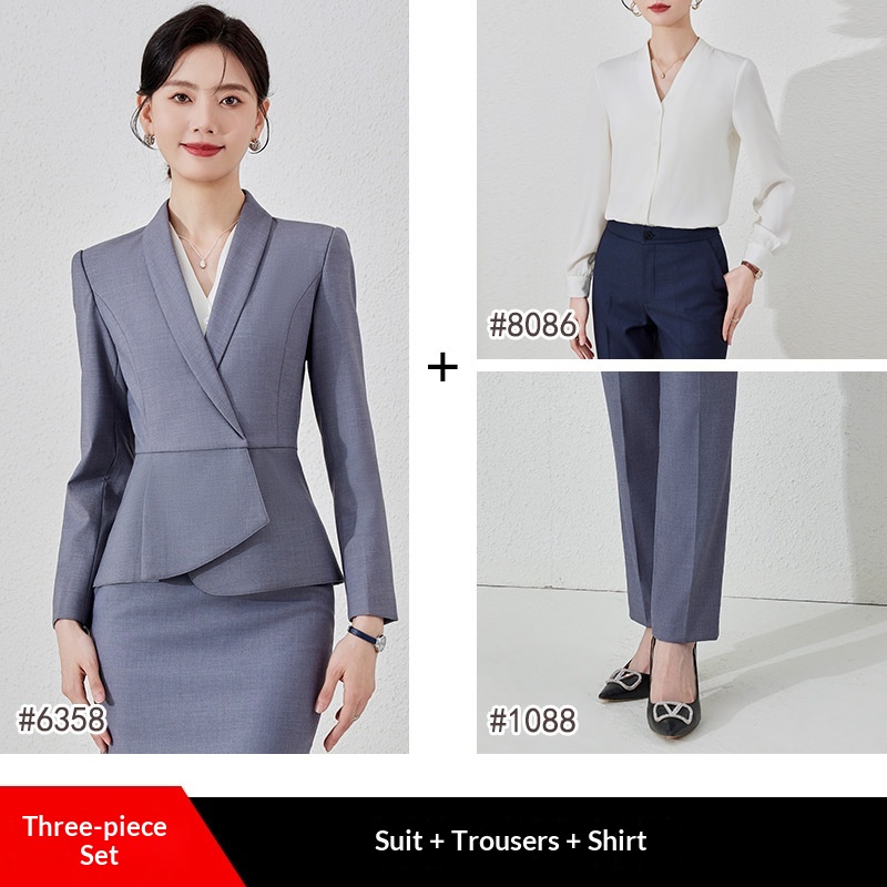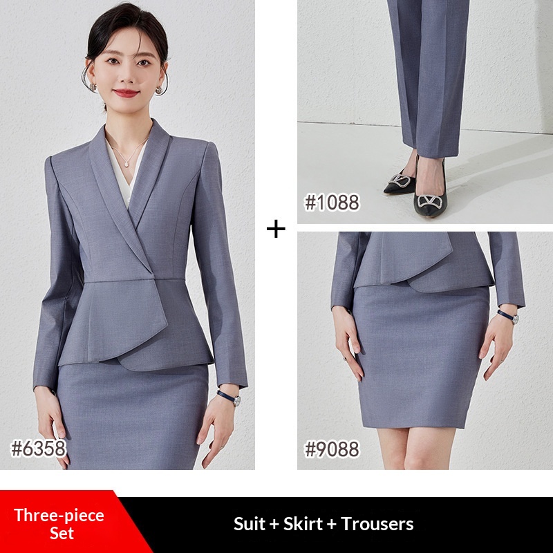 Gray Suit Professional Suit Female Autumn New Gold Jewelry Store Beautician Hotel Front Desk Manager Work Clothes
