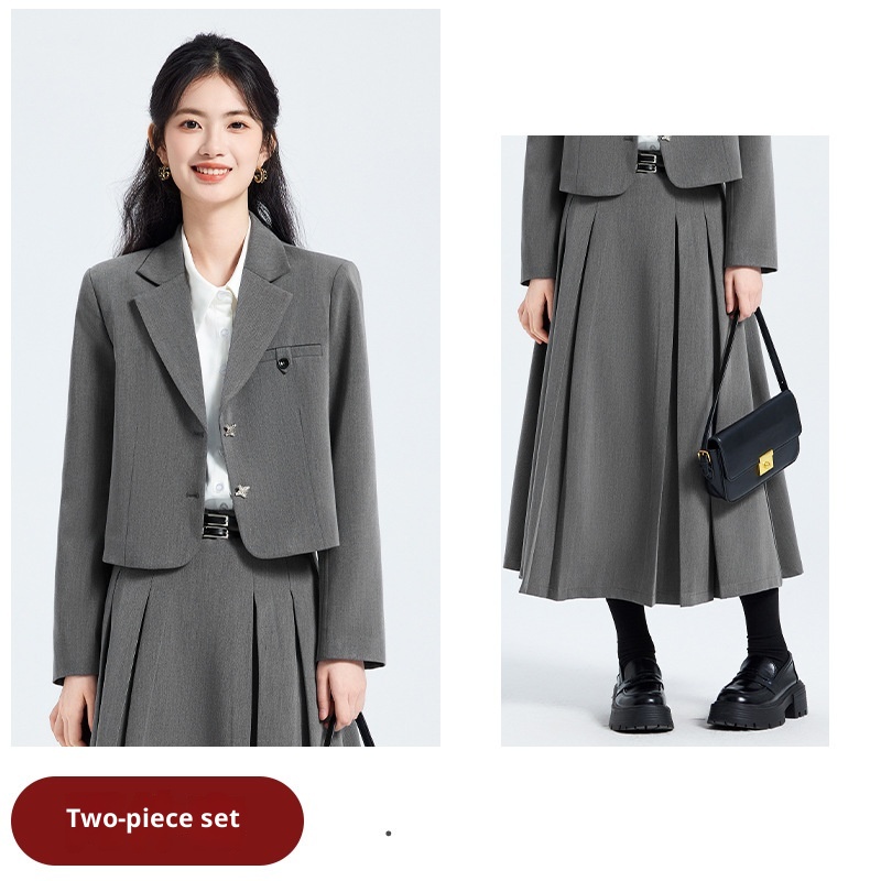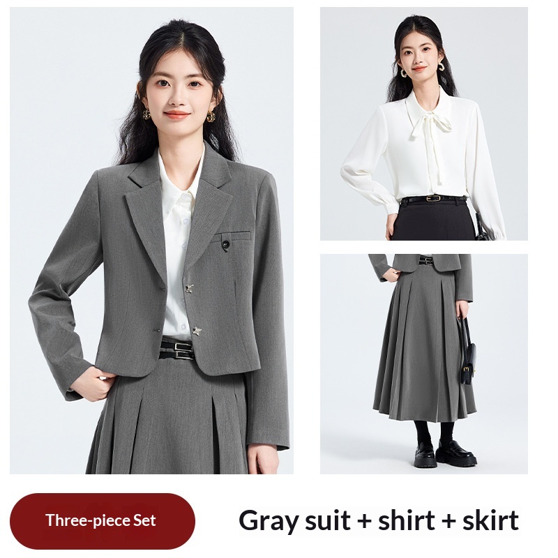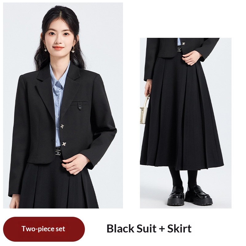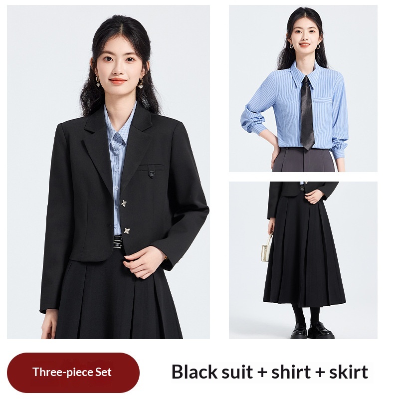 Item Number:KouRan9111 suit + 9111Q dress + 2108,Fabric Name:Polyester,Main fabric material composition 2:Spandex,Year/Season of Release:Spring 2025,Main fabric composition:Polyester Fiber,Color:Black Single Suit, Gray Single Suit, Black Suit + Skirt, Gray Suit + Skirt, Black Suit + 2110 Blue Shirt + Skirt, Gray Suit + 2108 White Shirt + Skirt, 9111 Black Skirt, 9111 Gray Skirt,Size:XS 42.5kg and below, S 42.5-49kg , M 49-53kg , L 53-59kg , XL 59-64kg , 2XL 62.5-67.5kg , 3XL 67.5-70kg,Brand:other,The length of the pants:Long Pants,Sleeve Length:Long Sleeve,Main fabric ingredient content:90% contains - 95% does not contain,Cross-border Style Type:Elegant and graceful,Sleeve Style:Regular Sleeve,Is it cross-border sourcing?:yes,Main fabric component 2 content:Below 30%,Main Downstream Sales Regions 1:Southeast Asia,Main downstream sales regions 2:European and American
