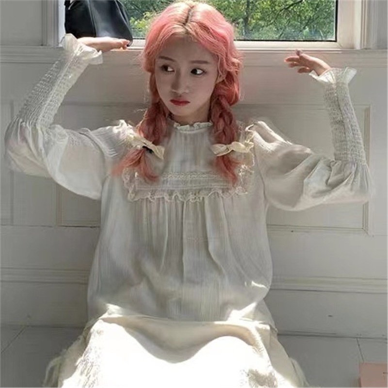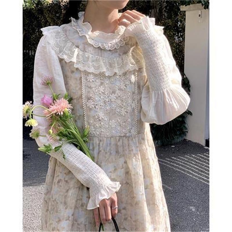 ChicShe Spring Sweet Girl - Abito con gilet sfumato di media lunghezza in pizzo patchwork + camicia a maniche lunghe, set da due pezzi