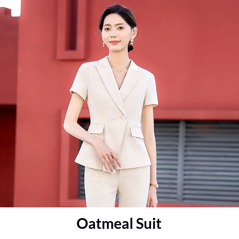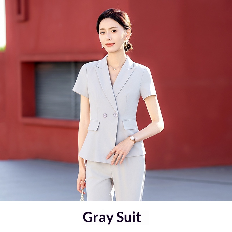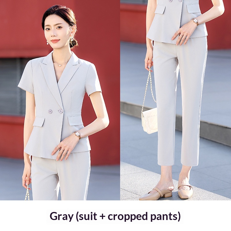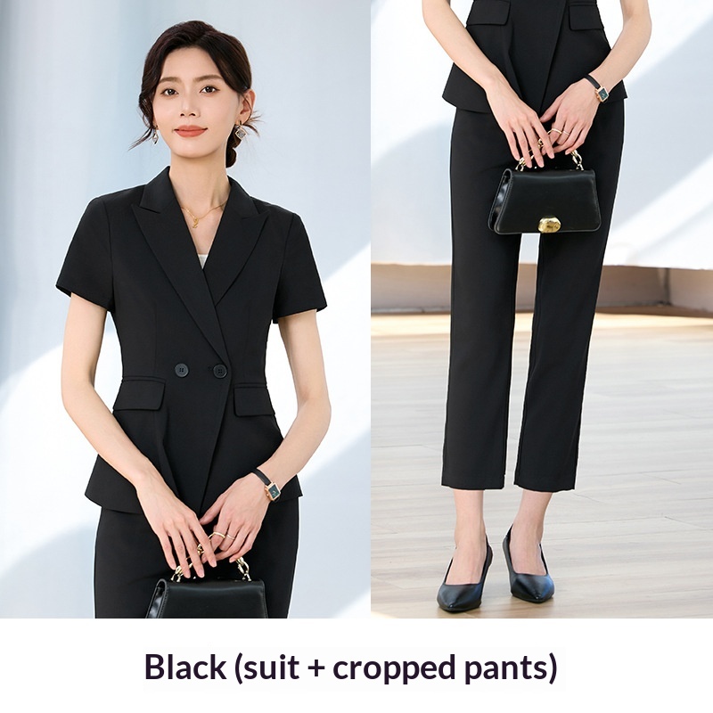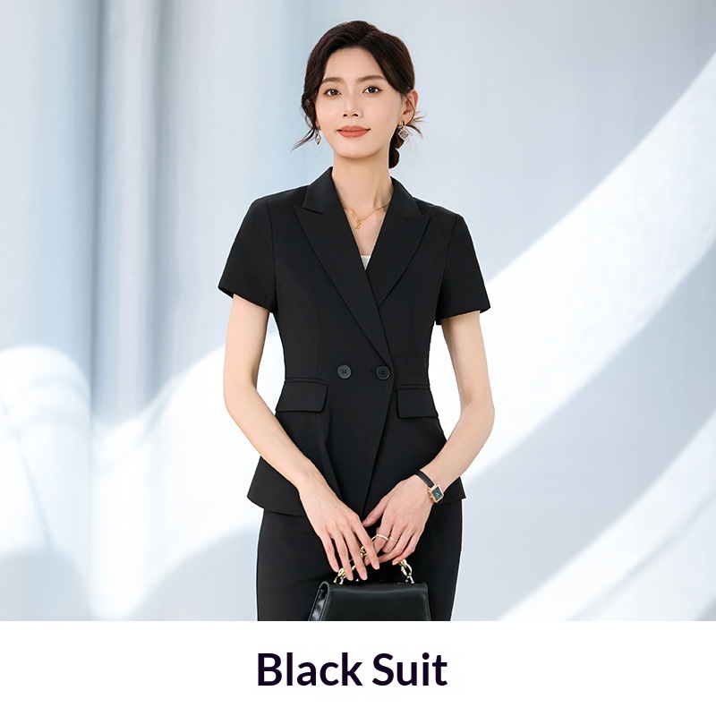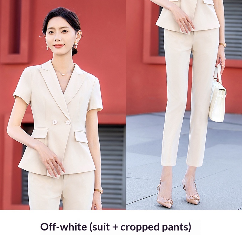 Completo estivo a maniche corte ChicShe da donna, abbigliamento formale professionale sottile 2025, elegante abbigliamento da lavoro per receptionist di hotel.