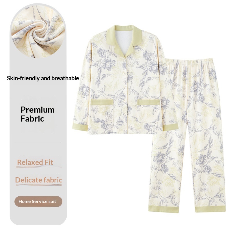 Pigiama da donna ChicShe, primavera e autunno, in puro cotone, con maniche a cardigan e pantaloni lunghi, set casual, ampio, indossabile, un pezzo