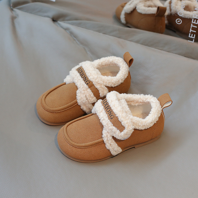 Children's cotton shoes 2024 winter edition suede soft soled bean shoes for boys and girls lamb wool versatile children's warm shoes