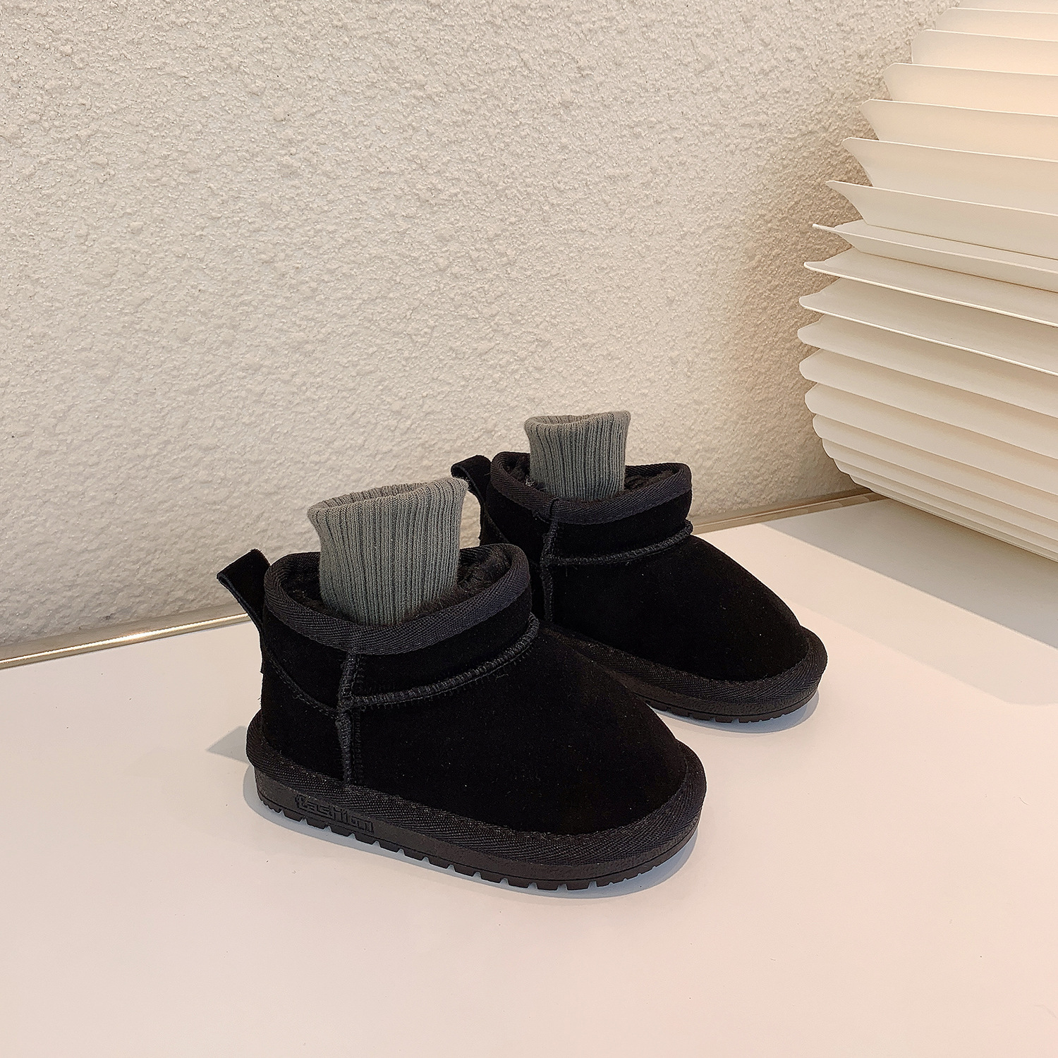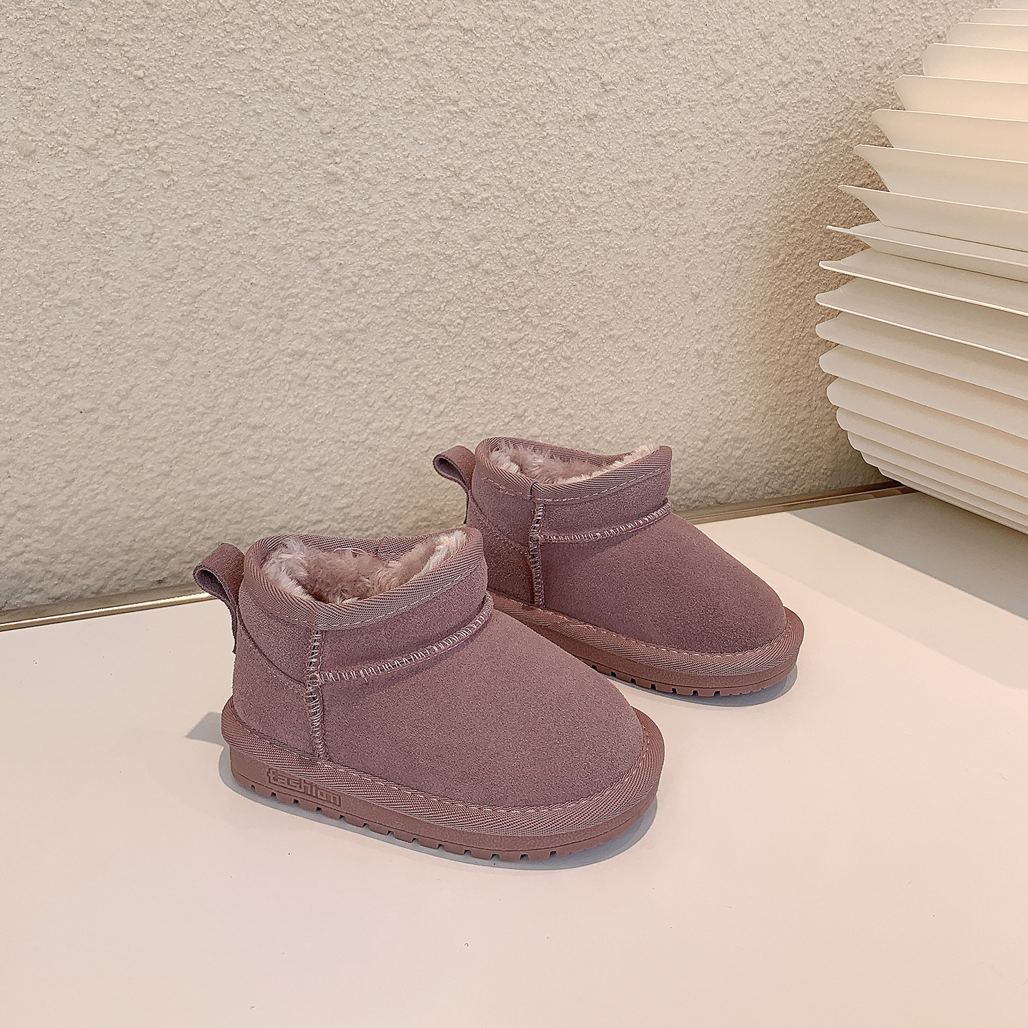 Children's short top frosted genuine leather snow boots Korean version girls' solid color cotton boots with loose feet, boys' short boots, baby cotton shoes