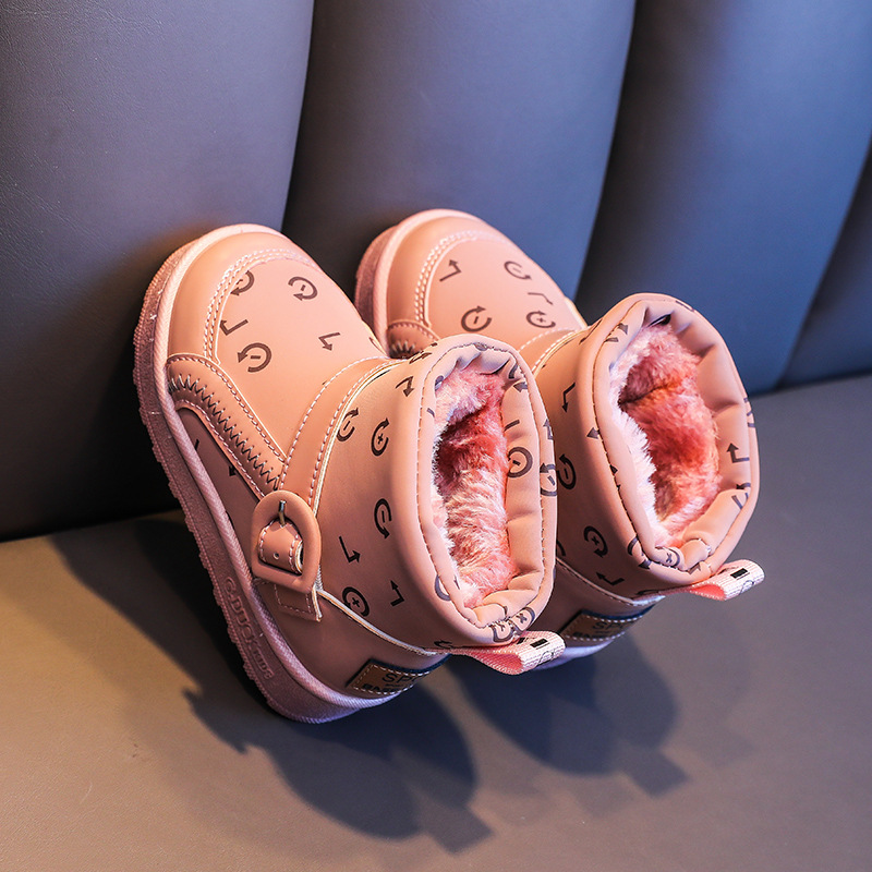 Children's snow boots, winter wear-resistant and thickened, fashionable boots for boys and girls, baby plush and warm, children's anti-skid short boots