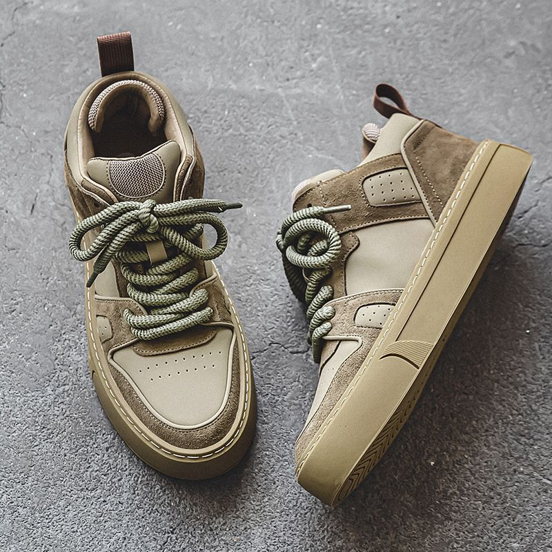 China-Chic thick soled mid top casual shoes lace up round toe plate shoes men's shoes trend versatile small white shoes lovers sneakers