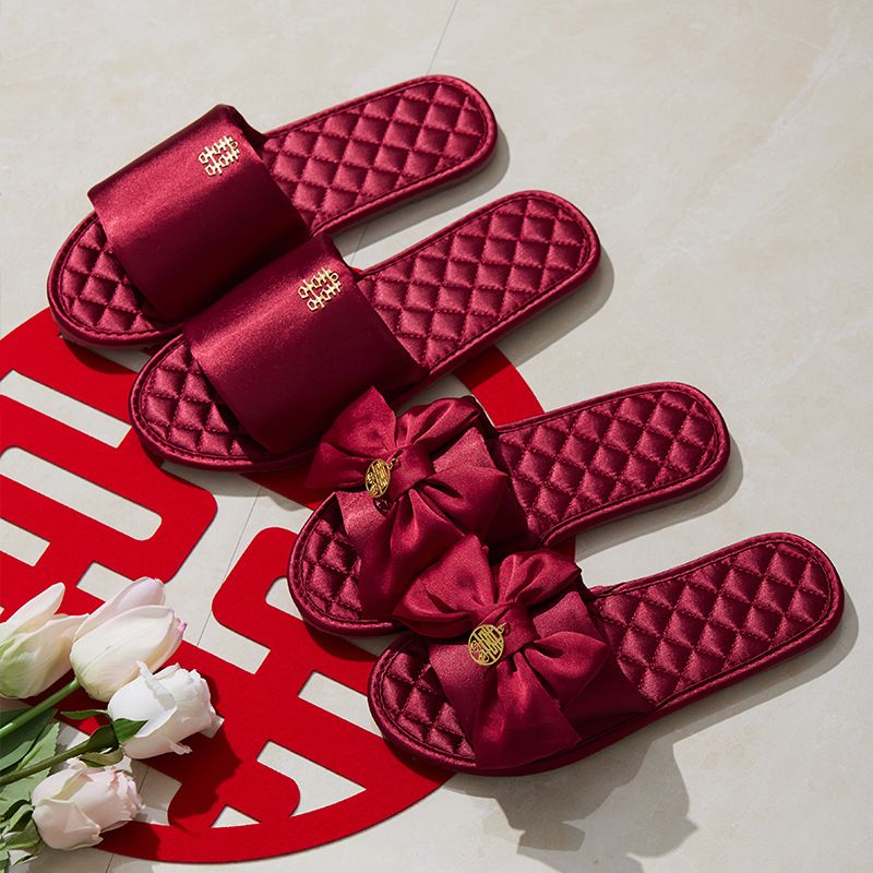 Wedding slippers, festive red, a couple's wedding, bride's dowry set, wedding room supplies collection, newlywed couple