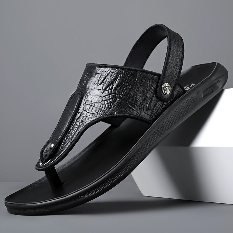 Summer men's cowhide cool slippers 2023 new genuine leather anti slip outdoor youth Korean version flip flops trend