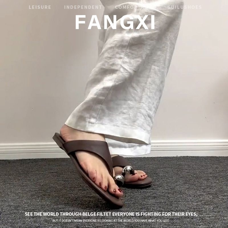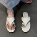 Ciabatte piatte in pelle di pecora con anello in metallo per donna, estive, da indossare all'aperto, con punta a clip, infradito da spiaggia, scarpe romane