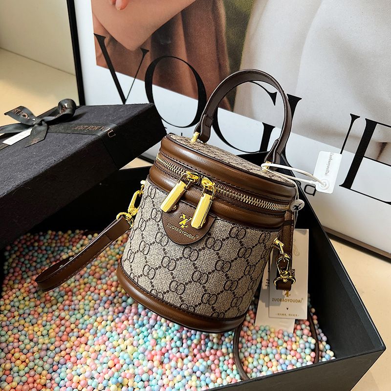 Cylinder Bag for Women with a Sense of Sophistication 2024 New Model Single Shoulder Crossbody Handbag Fashionable Versatile Printed Bucket Bag