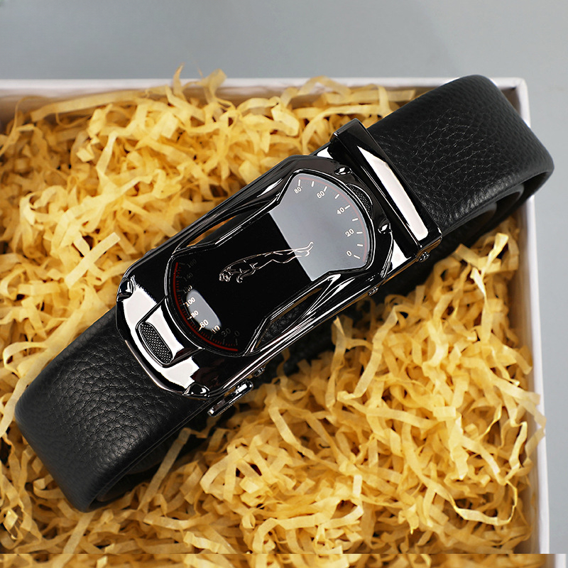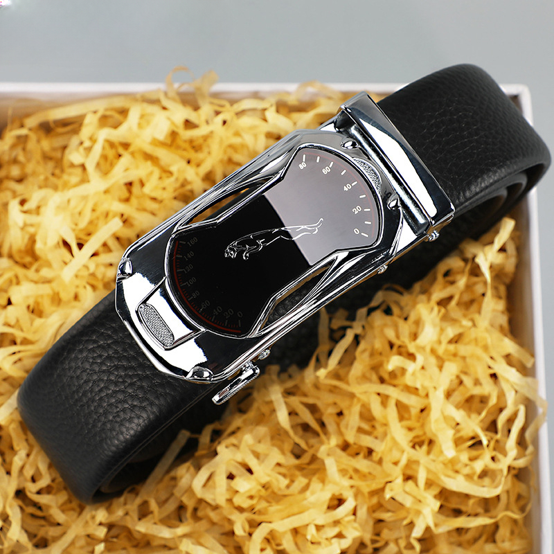 Cintura da uomo in pura pelle di vacchetta con fibbia automatica in pelle da uomo