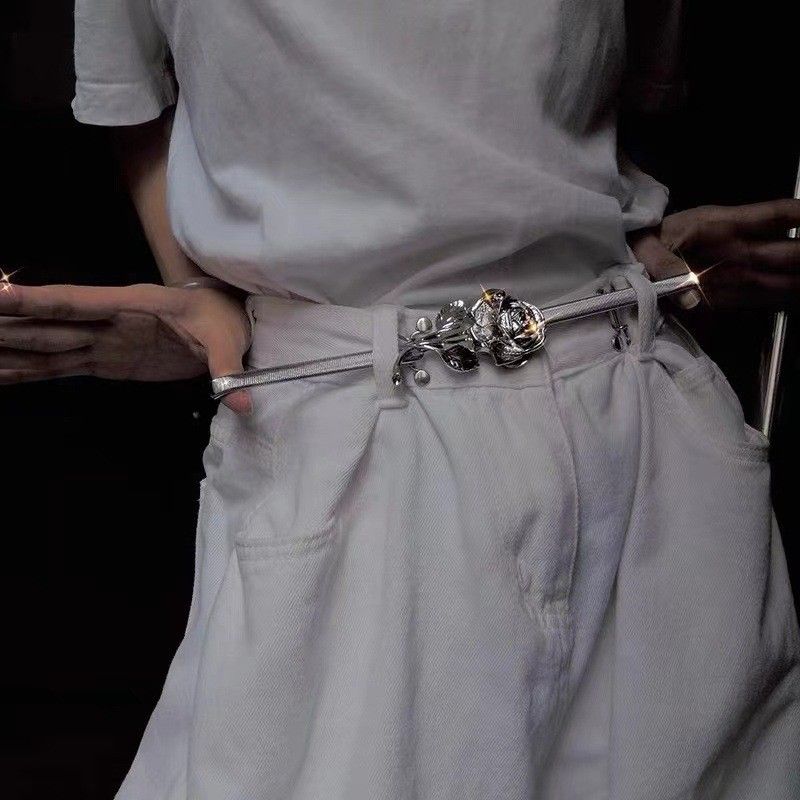 Small niche design, elastic and elastic, silver rose fashion, spicy girl belt, versatile and high-end accessory for women's daily life