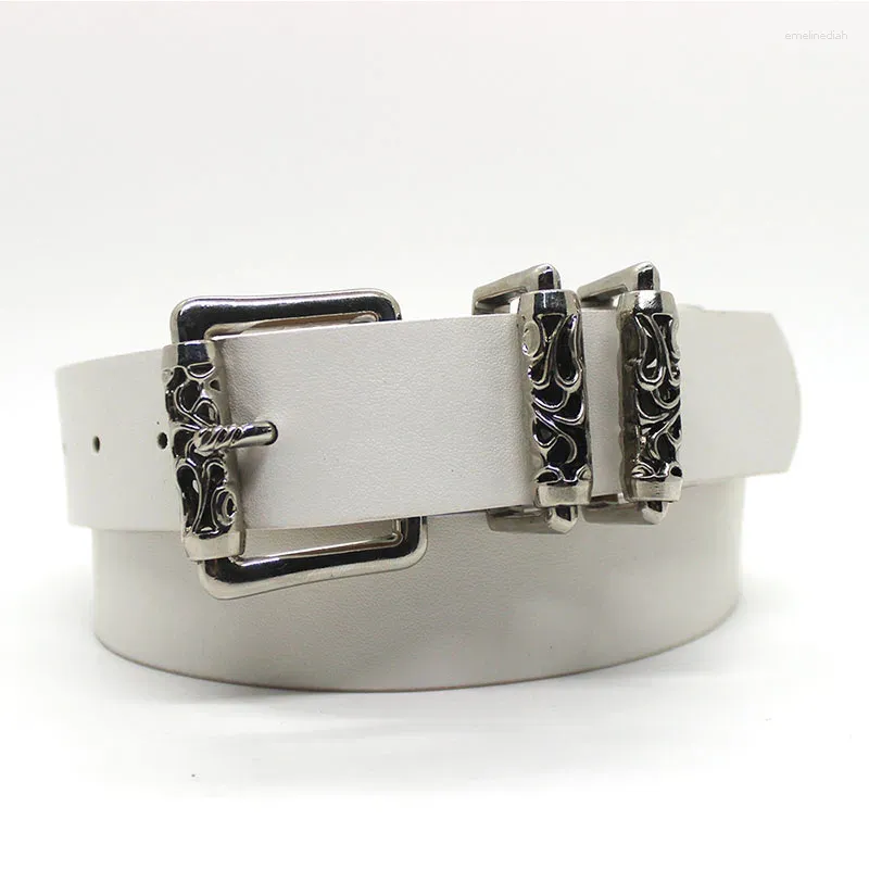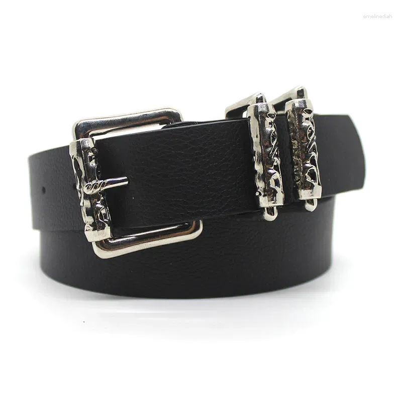 Cinture alla moda in PU per donna, in lega, con incisione, con fibbia ad ardiglione, cinturino in vita, stile punk, unisex, stile High Street
