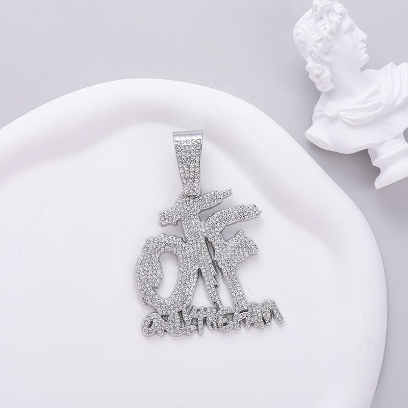 Ciondolo Hip Hop Full Diamond OFF Letter personalizzato e dal design unico in lega con catena cubana
