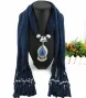 Ciondolo in resina con goccia d'acqua, nappa in poliestere, sciarpa etnica in jersey, accessori