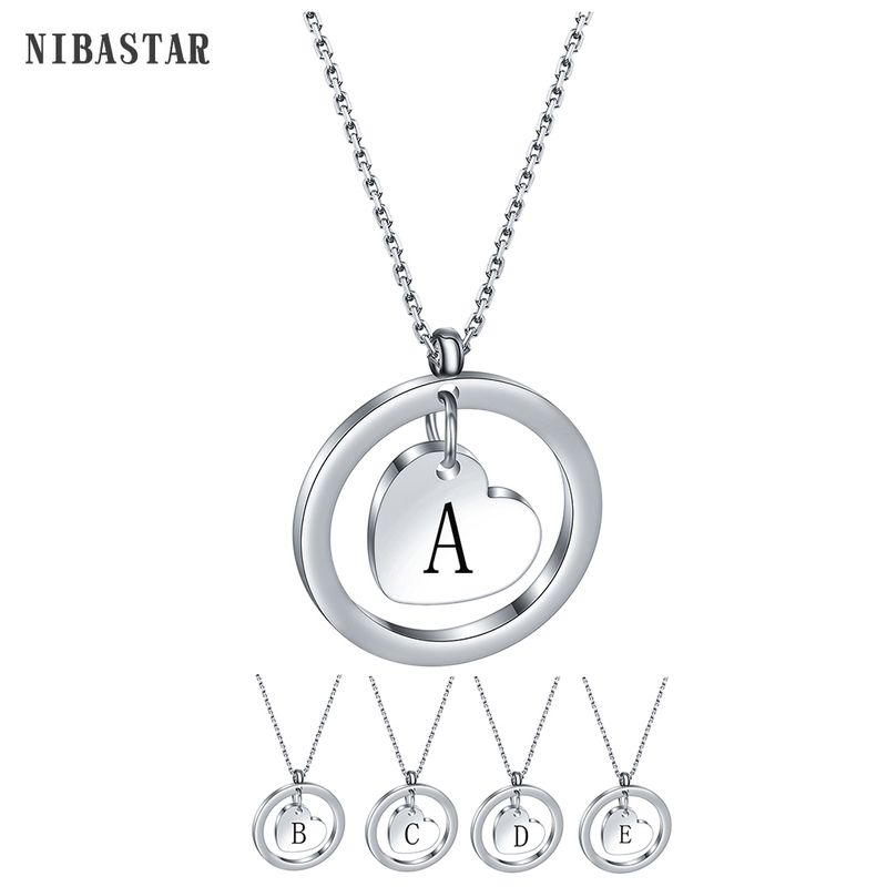 Stainless Steel Heart Initial Necklace Pendant with Black Letter Gift for Women Child Kids Necklace Jewelry