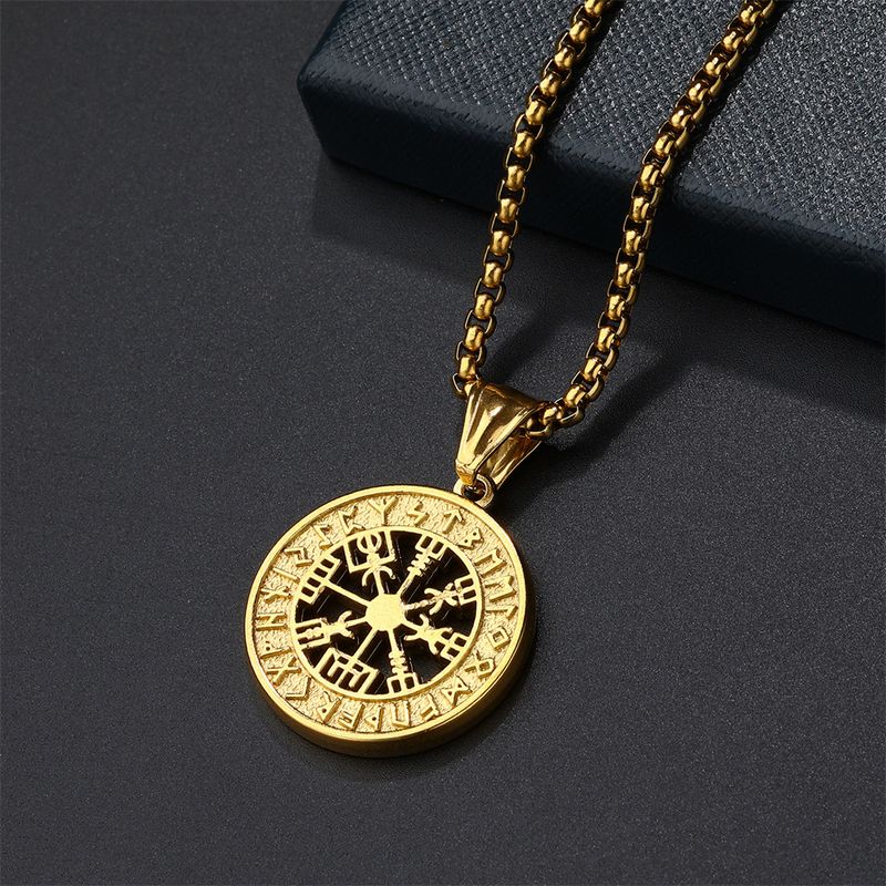Stainless Steel Nordic Viking Odin Circular Rune Pendant For Men's Trendy Hip-hop Necklace,Personalized And Exaggerated Necklace