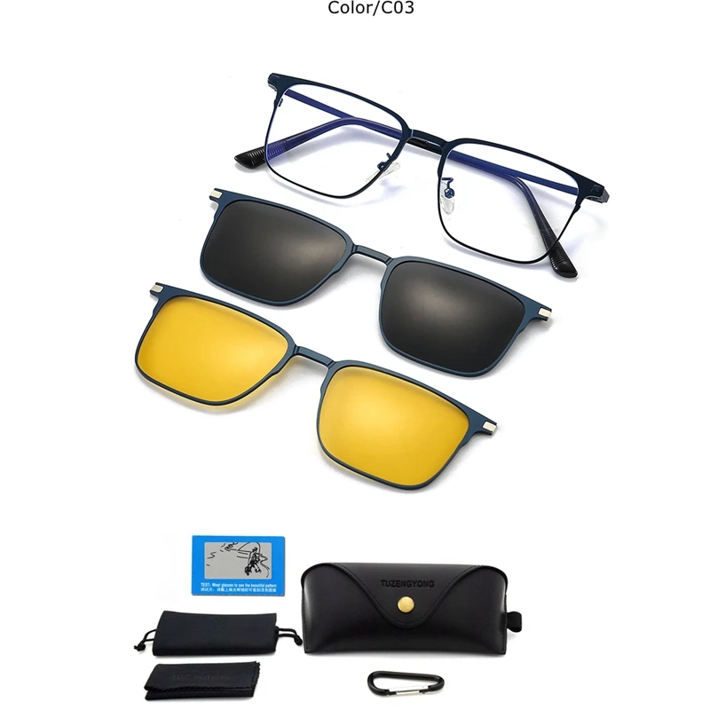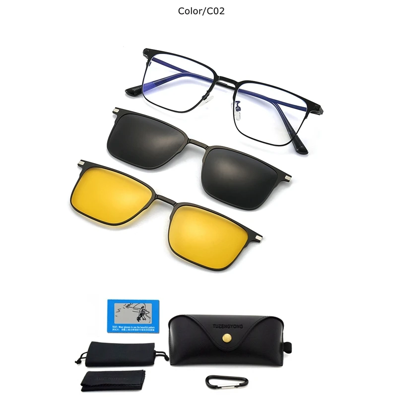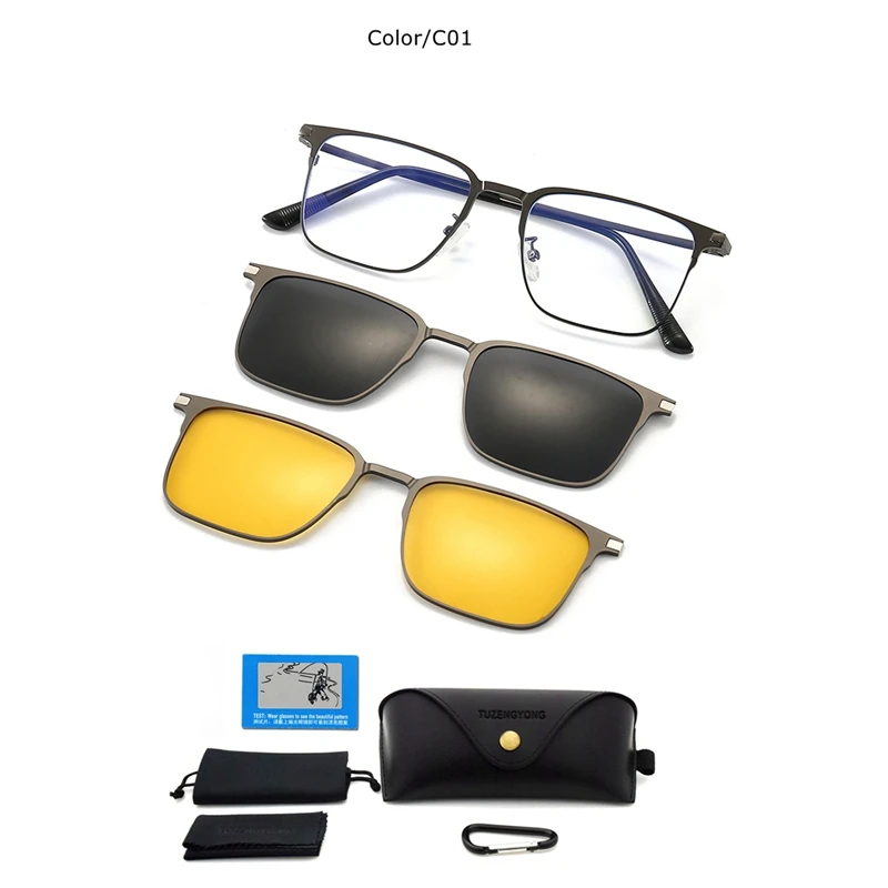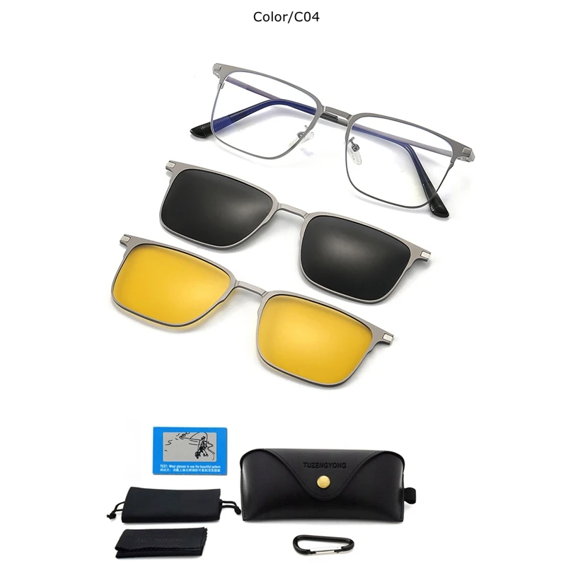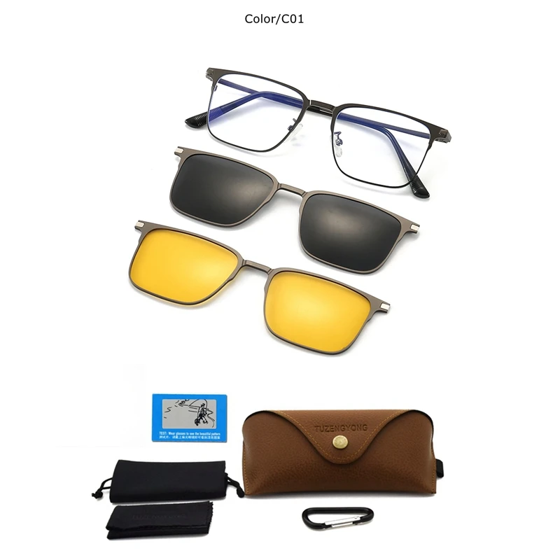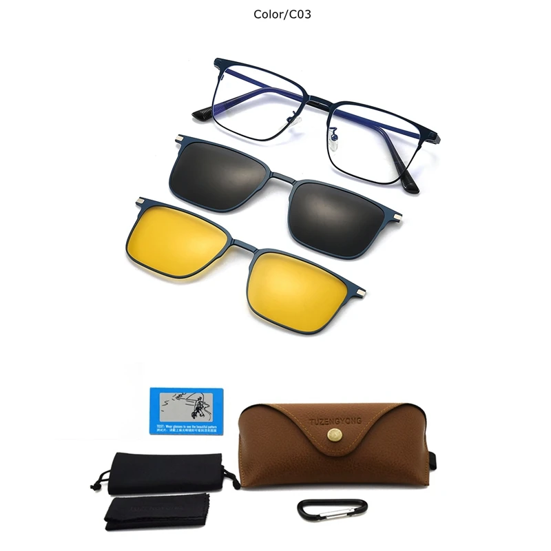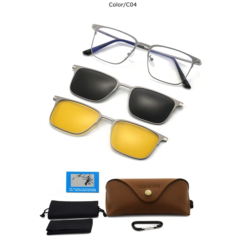 Classic Square Metal 3 In 1 Magnet Clip On Gl Frame Polarized Sungl For Men Women 2023 Nuovo computer ottico