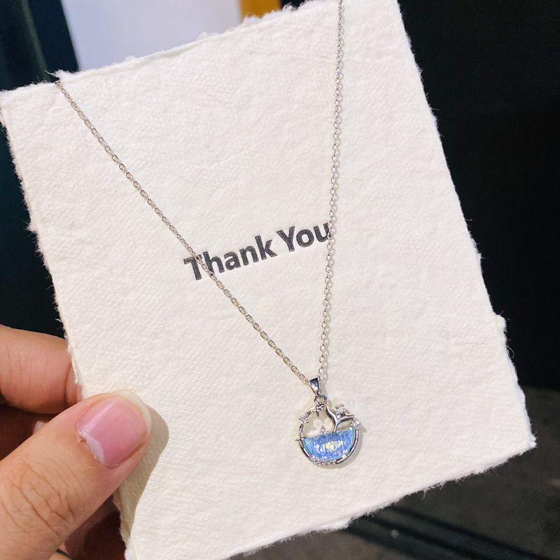 Collana a coda di pesce azzurra colorata per donna, serie Ocean, Dopamina, versatile, in acciaio al titanio, con catena per clavicola, calda