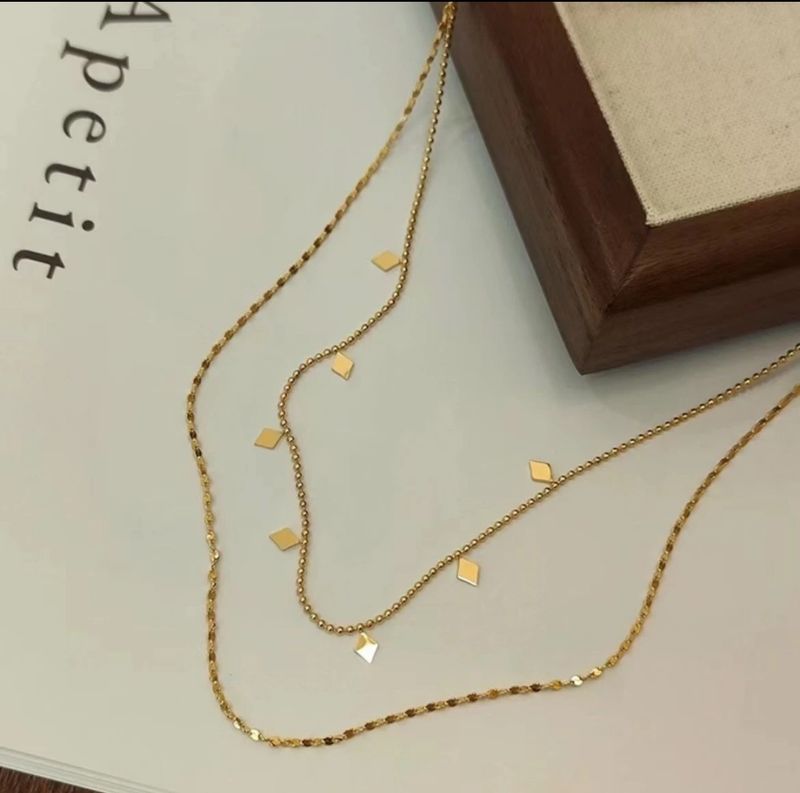 2023 Summer New Titanium Steel Necklace Network Red New Fashion Diamond Double Layer Necklace Women's Folding Wearing Style Small