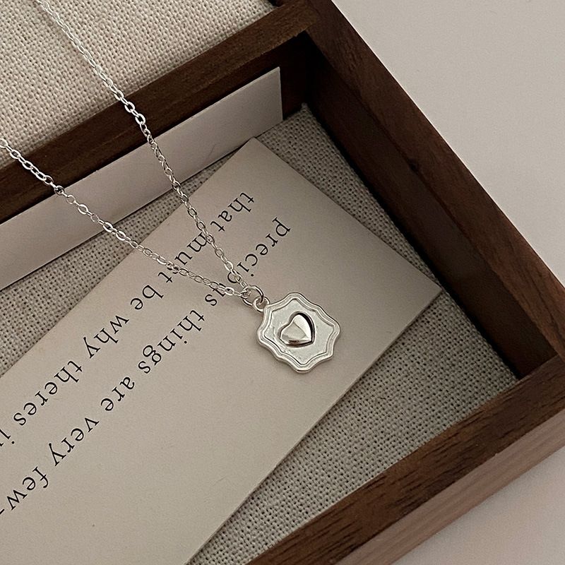 Collana a forma di cuore quadrata in argento puro per donna, versione giapponese e coreana, nuovo ciondolo a forma di cuore di pesca, nicchia