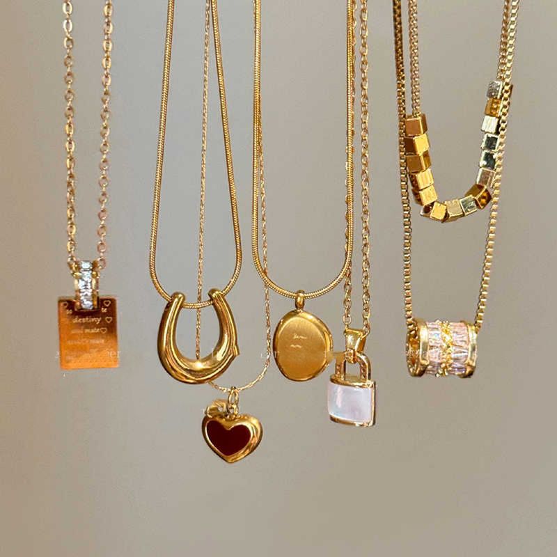 Collana a forma di fagiolo in acciaio inossidabile al titanio, catena versatile per clavicola da donna, leggera e di lusso di alta gamma