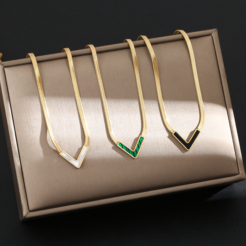Network Red Titanium Steel V-shaped Necklace Light Luxury High Grade V-neck Flat Snake Bone Chain Collar Chain Colorless Accessories