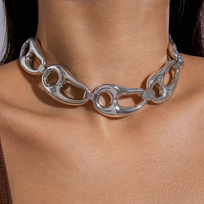Collana a maglie in stile punk, gioielli esagerati, catena per clavicola hip-hop