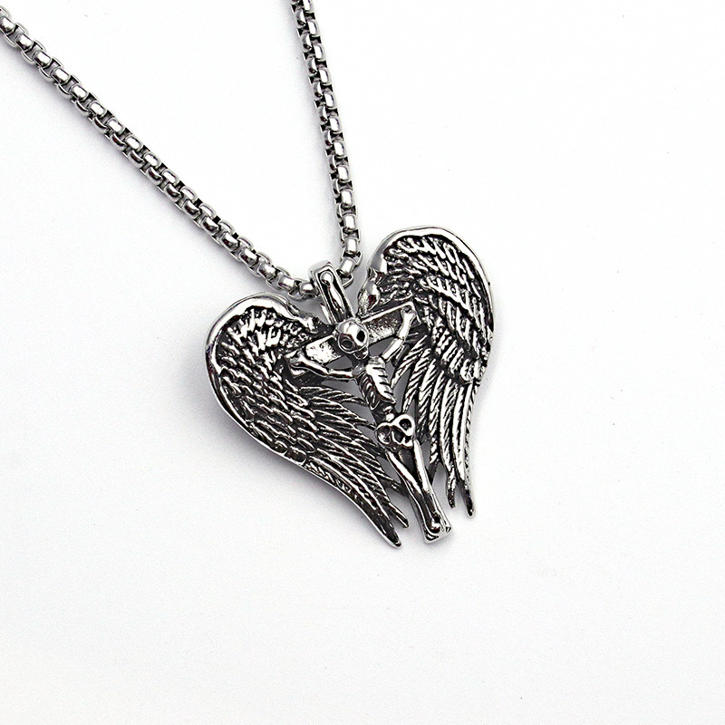 Collana con ali di piume e croce in titanio e perle, catena in acciaio inossidabile, semplificata, tridimensionale, solida_voghion.com