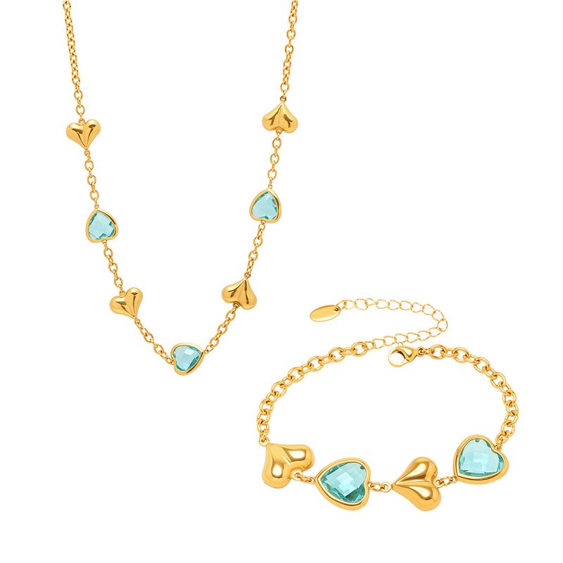 Collana con bracciale in pietra di vetro e acciaio al titanio a forma di cuore, set di gioielli da donna, con luce flash quadrata e super luminosa