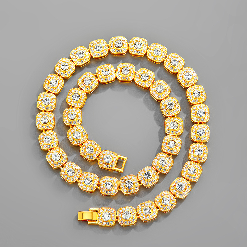Square Rock Candy Chain Niche Versatile Alloy Rhinestone 10mm Rock Candy Necklace for Men