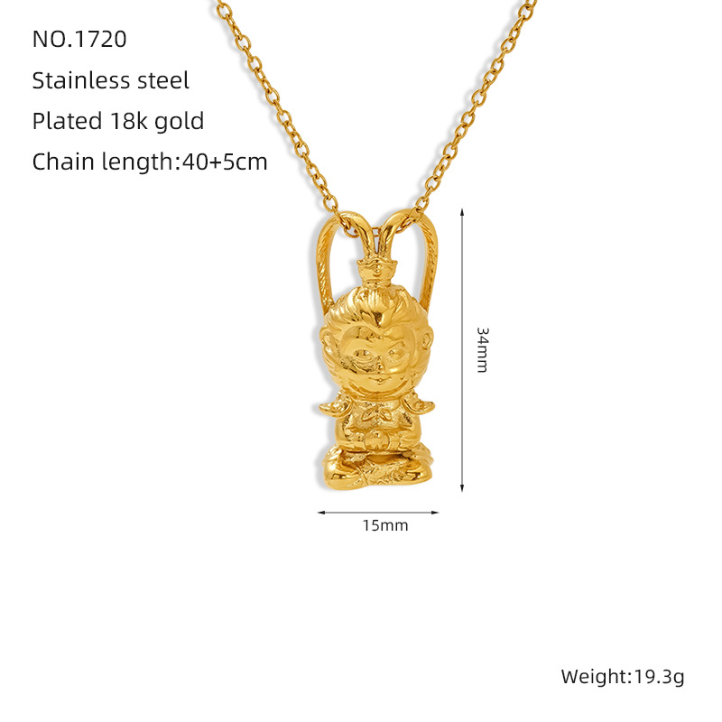 Unique Creative Niche Design Pendant Stainless Steel Gold-Plated Black Mythical Wukong 3D Pendant Necklace
