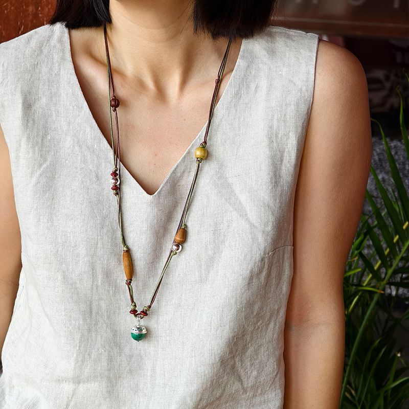 Collana con ciondolo a campana multistrato con perline di legno, corda di cera, stile etnico, design di nicchia, gioielli di senso per