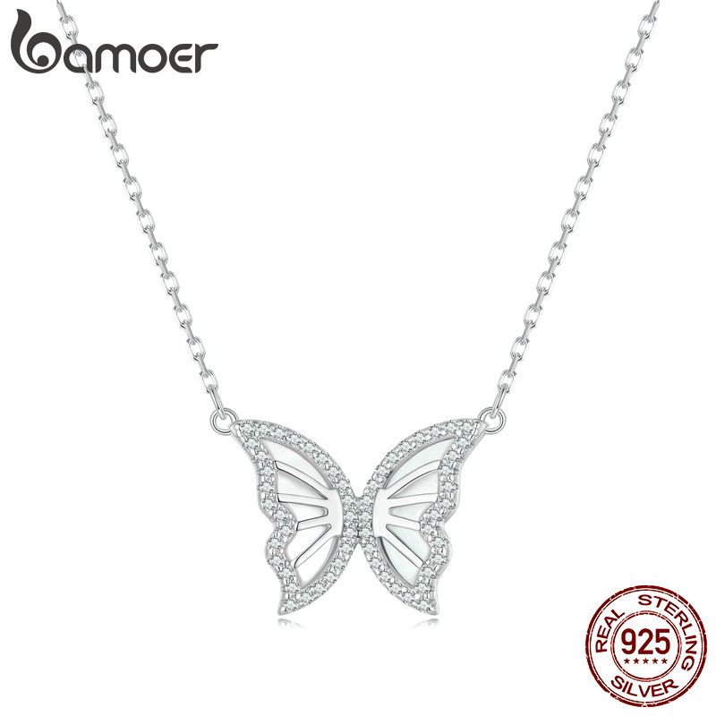 Bamoer Sterling Sier Butterfly Pendant Necklace for Women Birthday Christmas Gift Pave Setting CZ Fine Jewelry BSN293