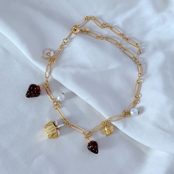 Collana con ciondolo a forma di cesto di fiori dolce alla moda, stile campagna, fiocco unico, da donna, in metallo, sailormoon, lunga