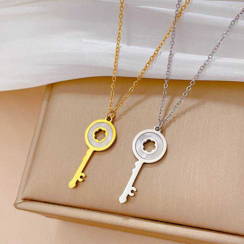 Collana con ciondolo a forma di chiave a conchiglia rotonda in acciaio inossidabile per donna e ragazza, nuova tendenza, catena girocollo resistente allo sbiadimento, regalo di gioielli