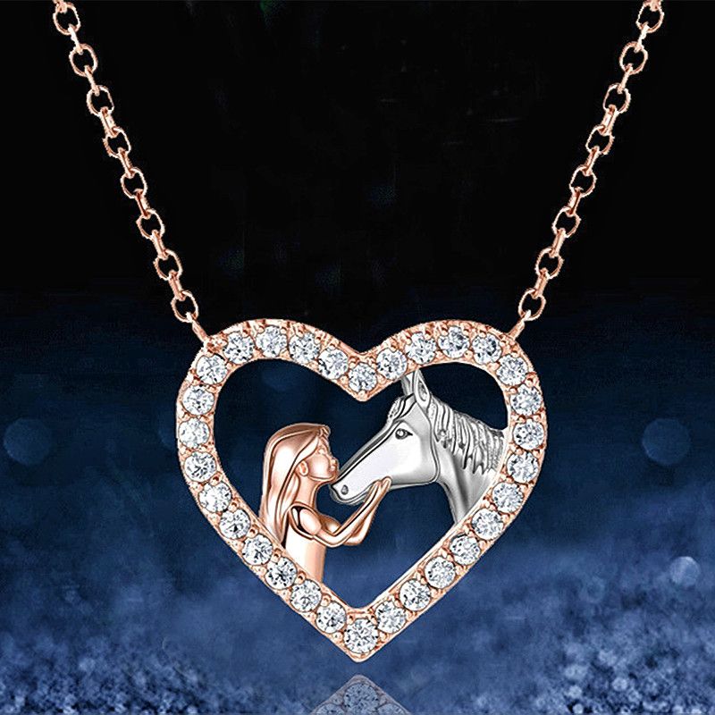 Collana con ciondolo a forma di cuore e cavallo