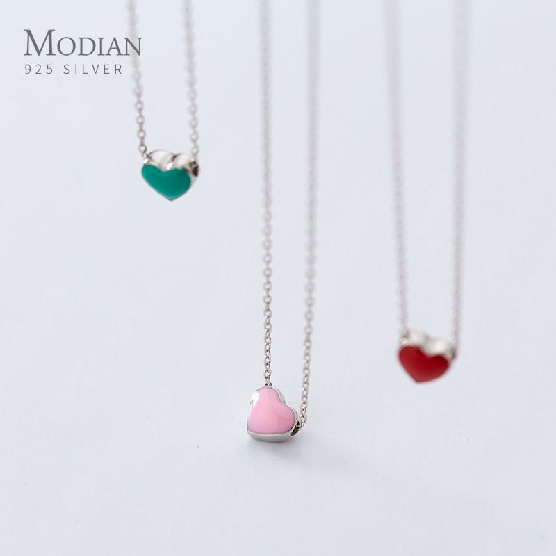 Collana con ciondolo a forma di cuore in smalto rosso rosa verde Modian Real Sterg, pronta consegna, per donna, dichiarazione, gioielli in argento pregiato
