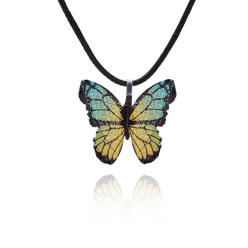 Cute Colorful Butterfly Necklace For Women Girls Natural Real Leaf Cut Butterflies Shape Aesthetic Rope Pendant Necklace Jewelry